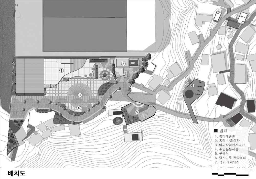 Residents, artists, administrators, and experts participated together from the initial stages of planning, and it was a good opportunity to establish a comprehensive master plan considering external spaces such as a site of an old well and a resting space with a sacred tree, as well as the unique history of Hongti Village and artistic characteristics of the neighborhood.