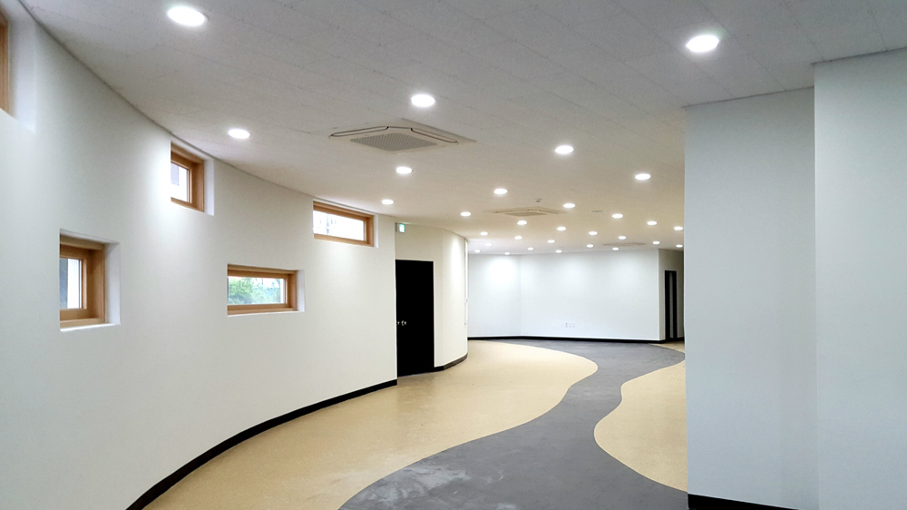 When you enter the village entrance in front of the artists’ joint workshop linked with the industrial complex, you will face the open exterior space at the front. The purpose is not to obscure the panoramic view of the well site at the village entrance, the sacred tree, and the village at the foot of Ami-Mountain. Considering that there is no public bath nearby, Village Hall installed a small bathing space for the elderly. For Art Village, we focused on providing an efficient workspace for artists and made a private workshop, a joint workshop, and internal and external gallery spaces after consulting with the artists several times. To secure the ceiling in the multi-purpose space, simple mass with fewer decorations was designed, except for the roof design of Village Hall and a part of the front accent façade of the joint workshop (factory).