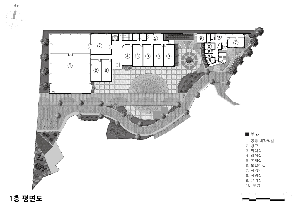 예술촌은 작가들의 효율적 작업공간 제공에 우선 초점을 맞추어 여러차례 작가와의 협의를 통하여 개인작업실, 공동작업실, 그리고 내·외부 갤러리 공간을 완성하였다.
