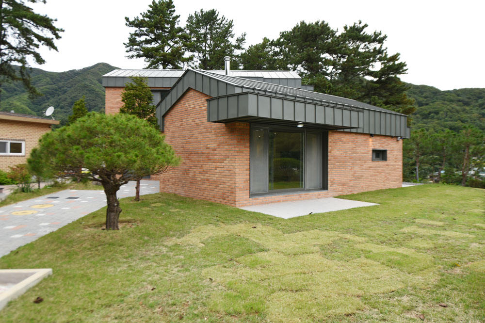 SONGKYEONGJE Architect | Park, Inchul + Km, Hyungjoong _ Arumdaun Architects + Pai Chai University Client | Kim, Uijung Supervisor | Park, Inchul _ Arumdaun Architects Construction | Park, Inchul _ Arumdaun Architecture Project team | Kim, Mihyung Location | 582-2, Hwaseo-ro, Seojong-myeon, Yangpyeong-gun, Gyeonggi-do, Korea Program | Residence Site area | 684.00㎡ Building area | 101.86㎡ Gross floor area | 134.52㎡ Building to land ratio | 14.30% Floor area ratio | 23.43% Building scope | 2F Structure | RC Exterior finishing | Brick, Zinc Interior finishing | Plaster, Wood, Silk-wallpaper Design period | Apr. 2018 ~ Dec. 2018 Construction period | Feb. 2019 ~ Sep. 2019 Photograph | Bahk, Joungyeon Structural engineer | Arumdaun architecture Mechanical engineer | Taeyoung enc Electrical engineer | Taeyoung enc Fire engineer | Taeyoung enc |