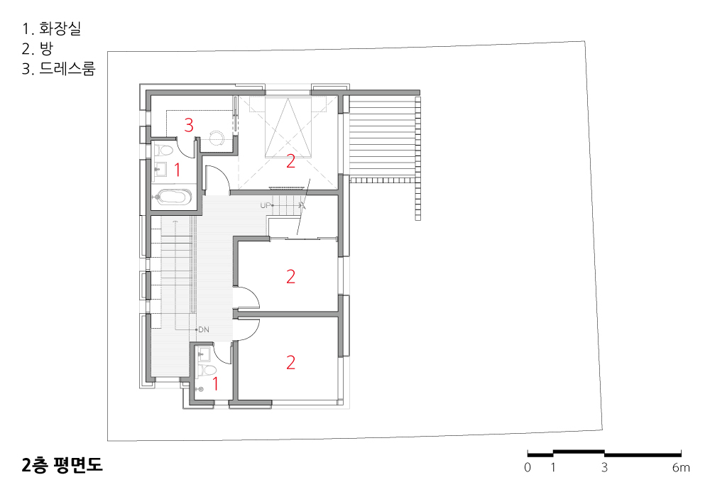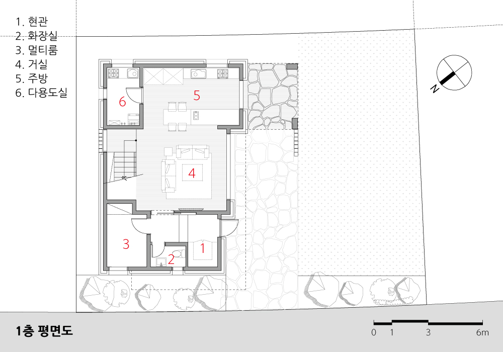 건축주가 특별히 주문한 요구 사항은 없었다. 본 건축사는 사전에 건축주와 나눈 이런저런 얘기들을 토대로 이 부지의 가장 큰 장점인 북서쪽 숲과의 연계방안을 고려해 아파트의 기능적 편리함과 단독주택의 여유로움이 조화를 이루도록 평면 구상을 했다.