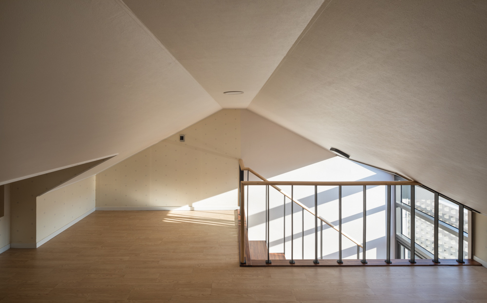 Then, the stairs from the second floor to the attic were considered to be a five-sense stimulating space for children to see and hear raindrops falling on rainy days and to look at the night sky on clear days.
