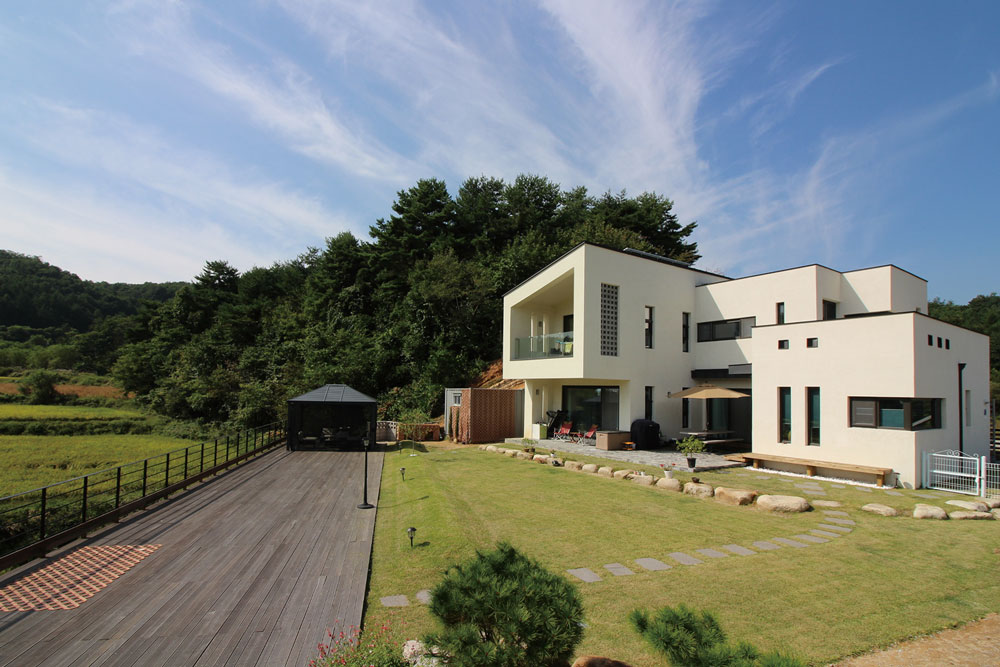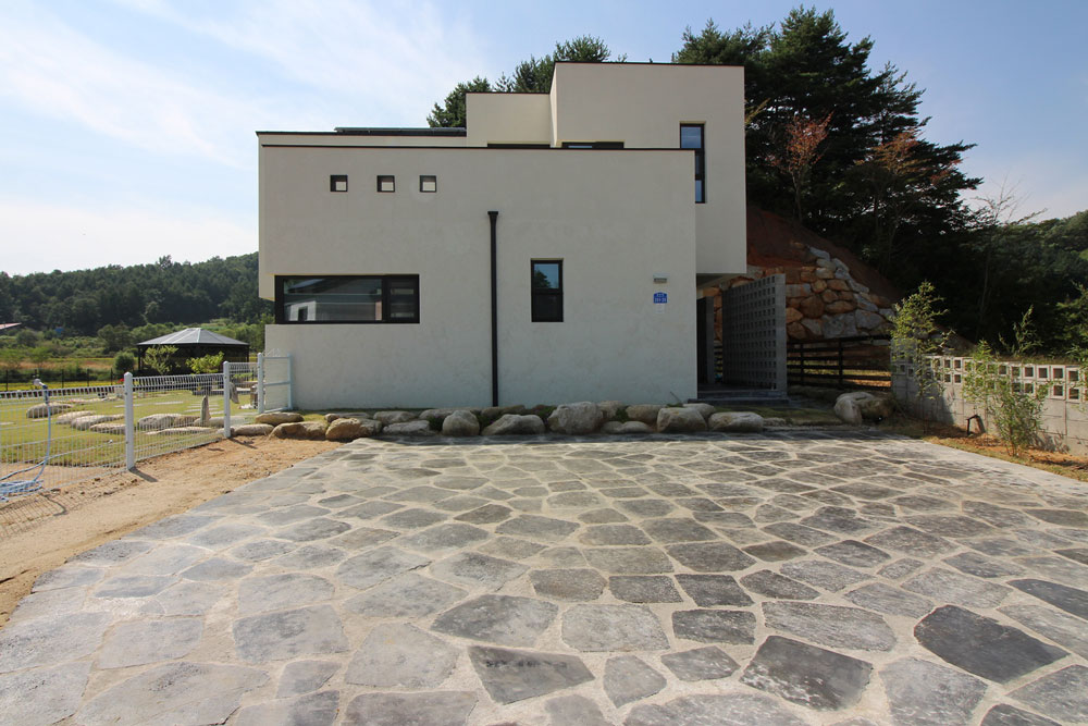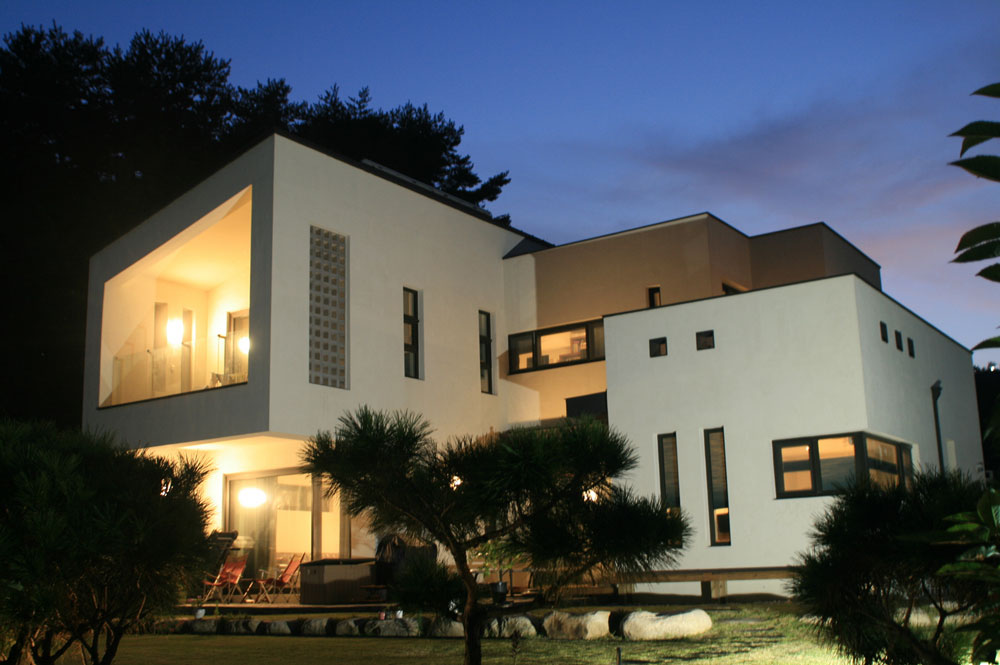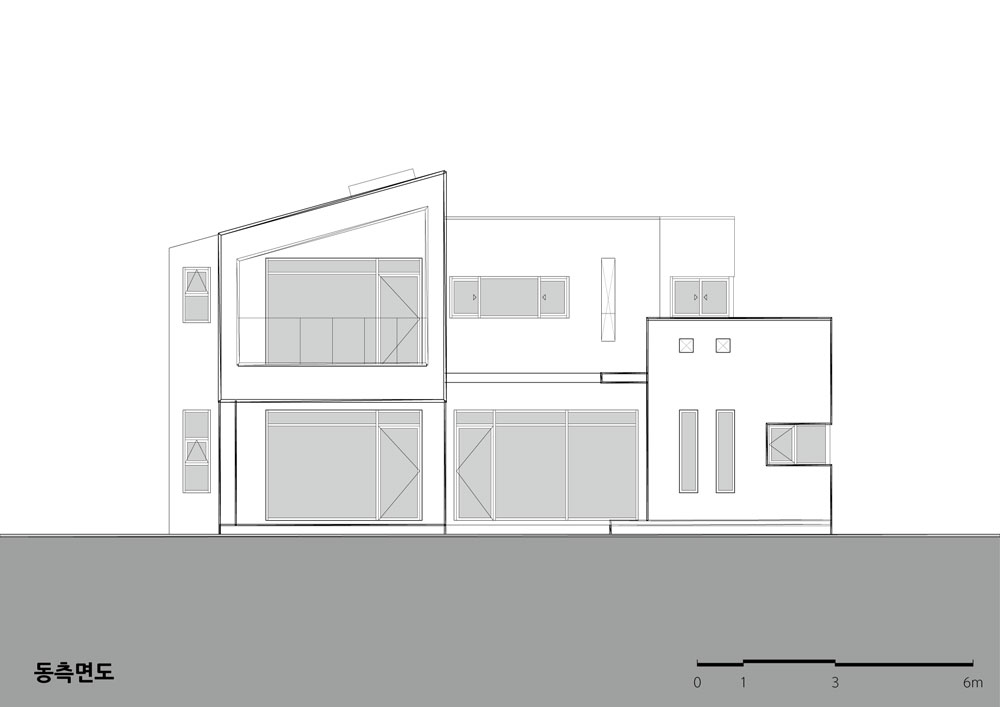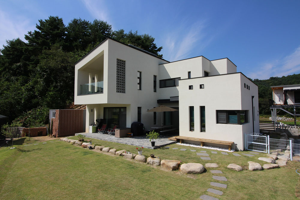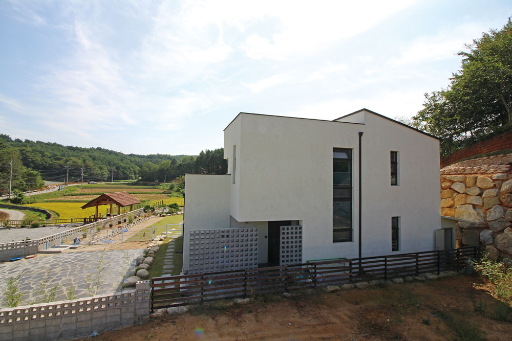 By applying the merits of traditional Korean house eaves, I made it possible to maintain a pleasant indoor environment with energy saving through natural light and ventilation system using convection flow. T150 insulation and triple-layered LOW-E double-glazing were used, and applied external insulation method which is relatively inexpensive but has good insulation performance. In relation to windows, I tried to reduce heat loss, using high-tight system windows.