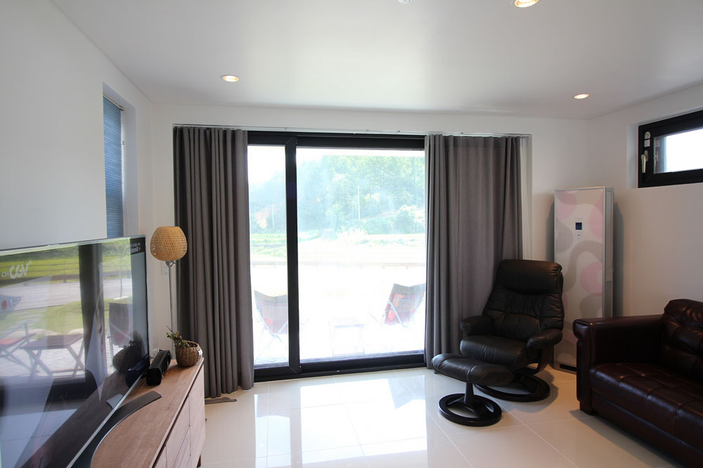 Through the eaves and the skylight(horizontal window at the upper side of the wall), the amount of sunshine can be secured and adjusted. Especially, if the proper amount of sunshine is secured during the winter, the room temperature can be maintained at 17~18℃ in the emergency heating mode.
