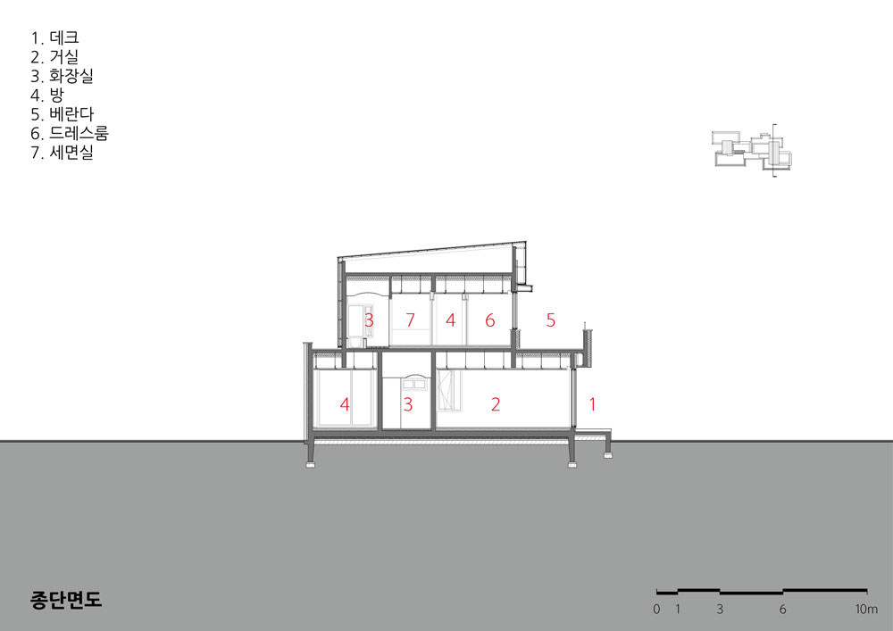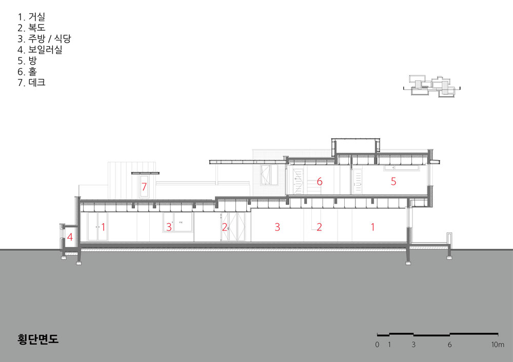 세대 간 각 실의 연결, 세대와 세대 간의 연결, 내부와 외부의 연결은 통합적으로 구성되어 결국 하나의 큰 집이 될 것이다.