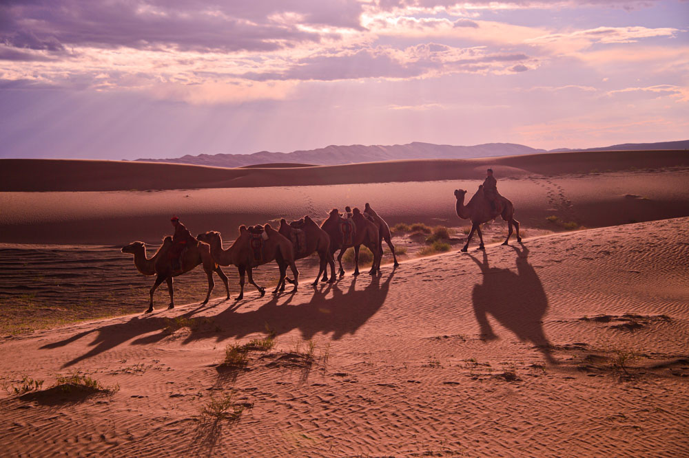 몽골과 중국 국경 사이에 있는 동서 1500km, 남북 800km, 면적 129만 5천km²에 이르는 암석 사막이다. 지구상에서 가장 북쪽에 위치한 사막이다. ‘고비’는 몽골어로 ‘풀이 잘 자라지 않는 거친 땅’이라는 뜻이다. 이름에 걸맞게 고비 사막의 강우량은 상당히 적은 편이다. 중앙부는 연간 25∼50mm 정도다. 다만 이는 일 년 동안 조금씩 내린 게 아니라 여름에 집중적으로 내린 수치다. 그래서 근처에 사는 사람들은 추위는 느껴도 눈이란 게 뭔지는 아예 모른다고 한다. 고비 사막 한 가운데에서 만난 낙타 무리를 보면서, 먼 옛날 실크로드를 통해 서아시아와 동아시아를 오고가는 대상들의 광경이 그러했으리라 상상을 해본다.