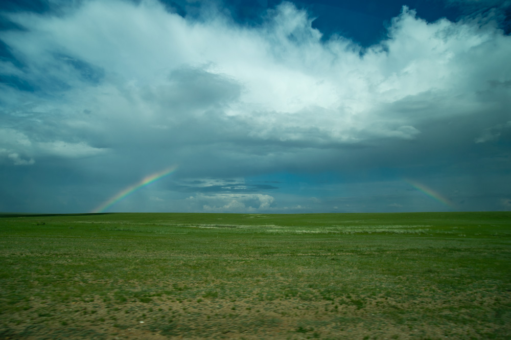 고비 사막을 뒤로하고 우브르 항가이로 향하는 일정을 위해 우리는 이름 모를 초원을 한없이 달렸다. 그러던 중 멀리 지평선 가까이에서 뇌우가 형성되는 광경이 보여 급히 차를 세우고 정신없이 셔터를 눌렀다. 좀처럼 볼 수 없는 장관이었다. 몽골은 역시 기대한 바와 같이 텅 빈 평원만이 존재하지는 않았다. 1시간가량의 뇌우가 끝난 뒤에는 아름다운 무지개가 생성되는 광경이 연출됐다. 몽골 현지 사람의 말로는 우리 눈에 보이는 뇌우의 중심까지의 거리는 대략 10km정도라고 한다. 평원의 넓이가 우리가 일상적으로 느끼는 것과는 확연히 다르다는 사실이 놀라웠다.