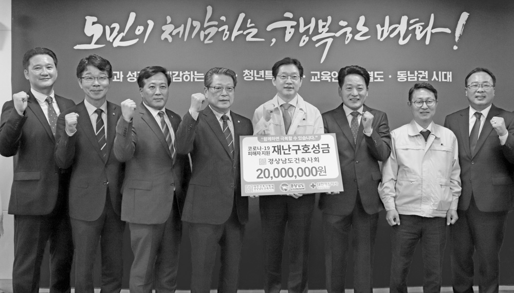 경상남도건축사회는 지난 5월 6일 코로나19 극복을 위해 노력을 기울이고 있는 지역 의료인과 취약계층을 위해 성금 2,000만 원을 경상남도에 전달했다.