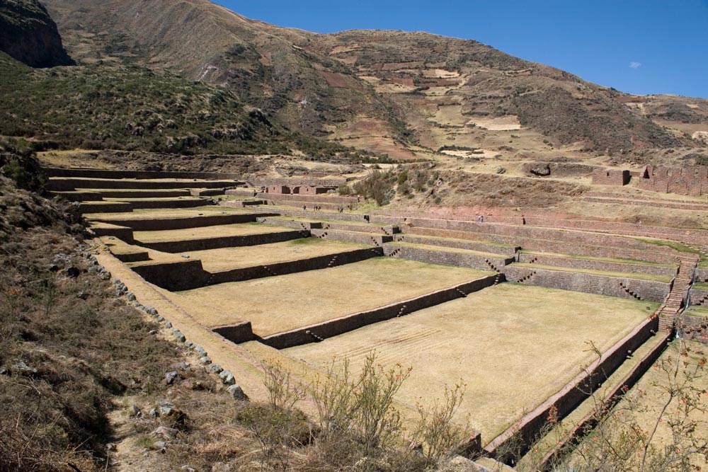 티폰에서 택시를 타고 10여 분 달리면 계곡 언덕에 티폰 테라스가 장엄하게 나타난다. 잉카 시대처럼 물줄기가 거침없이 수로를 따라 흘러내린다. 북서 방향으로 기울어진 테라스는 곳곳이 아직도 발굴이 진행 중이다. 계단식 테라스 외에 신전, 운하와 수로를 포함한 다양한 시설이 존재했지만, 햇볕에 말린 진흙 벽돌 건축물은 흔적도 없이 사라지고 없다. 거대한 직사각형 테라스가 잉카 시대처럼 보존된 티폰은 고고학적으로 잉카의 대표 유적지 열여섯 곳 중 하나다. 기후의 영향을 받지 않는 완벽한 수로가 여러 갈래로 나뉘어진다. 산등성이를 따라 펼쳐진 전체 테라스에 물을 공급한다. 연구자들에 따르면 테라스의 높이에 따라 미세하게 온도가 차이난다고 한다. 이곳은 완벽한 농작물 실험실이었을 것이다.