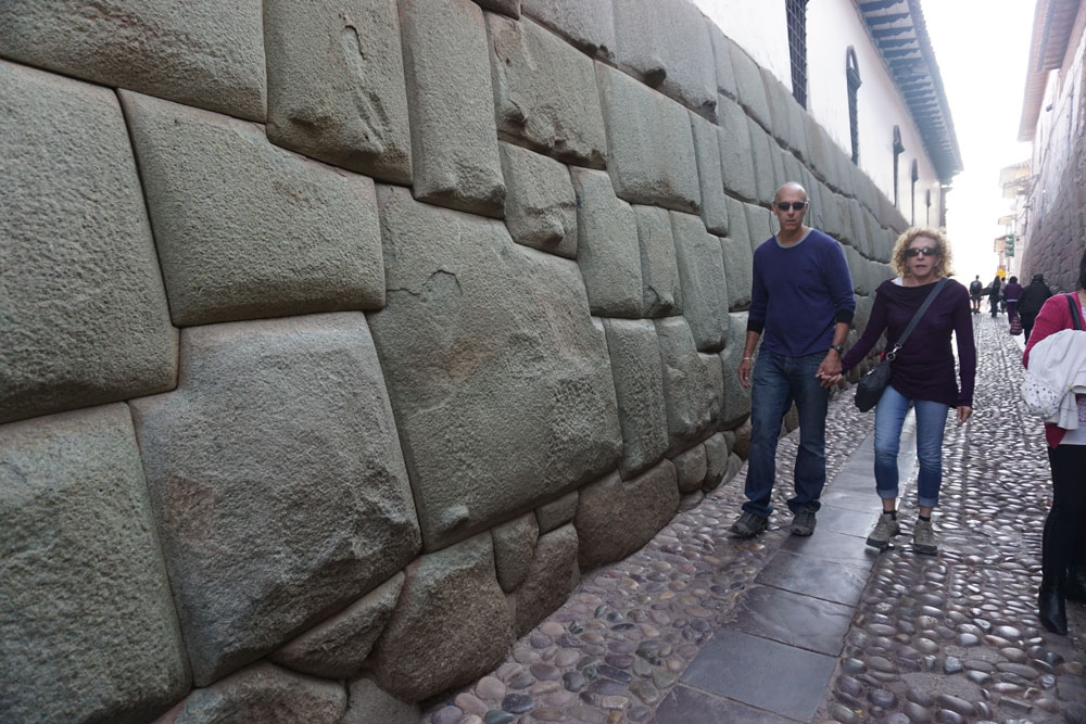 돌을 다루는 데는 세계 최고라는 칭송을 받는 잉카의 석공은 이집트의 피라미드나 그리스의 파르테논 신전처럼 돌을 수평으로 자르지 않았다. 본연의 형상을 존중해 최소한의 가공만으로 큰 돌에 작은 돌을 끼워 맞추었다. 따라서 12각형 돌이라고 하는 것은 정확한 표현이 아니다. 사람들의 눈에 그냥 12각형으로 보일 뿐 어느 한 곳도 직선은 없다. 거친 돌이 울퉁불퉁 맞물려 쌓아올려진 자연스러운 돌담에 그들이 신성시한 퓨마와 뱀의 형상이 거대한 모자이크처럼 남아 있다. 일일이 사람의 손으로 돌을 쪼아가며 이음새를 맞춘 잉카인의 정성이 꿈틀거린다.