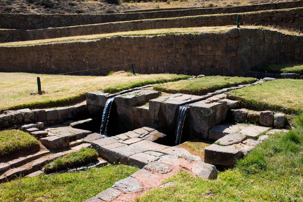 오솔길을 따라 상부 유적지에 오르면 온전한 상태로 보존된 티폰 분수가 나온다. 잉카 유적지 가운데 가장 거대한 관개 수로다. 분수가 벽을 타고 흘러 네 개의 물줄기로 연결된다. 이는 다산을 의미하기도 하지만 잉카 제국의 네 부족을 상징하는 것으로 짐작된다. 티폰 유적지는 제국의 동남쪽 식량 기지로 탐보마차이에 버금갈 정도로 물의 신에게 경의를 표하던 신성한 장소이다. 탐보마차이가 북방 민족이 쿠스코로 진입하기 전에 의식을 치르는 공간이었다면, 티폰 유적지는 남방 민족이 쿠스코에 진입하기 전에 의식을 치르던 곳이다. 쿠스코는 완벽한 도시 계획으로 무장한 신성한 도시였다.