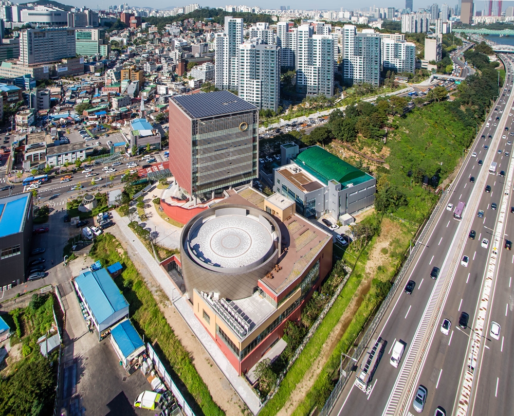 Arrangement of complex facilities with a large floating population on the side of Hyeonchung-ro and religious facilities as a static space along the Han River to maximize visual symbolism comes from an active interpretation of the site that expected the identity of Won Buddhism and the role of landmark. In addition, while the three-dimensional outdoor circulation leading to the Han River enjoys the scenery of the Han River and Namsan, the 'A way of Emptying', engraving the doctrine of Won Buddhism, is connected to the 'meditation space,' a healing space, so as to give meaning to become a place of architectural communication unique to Won Buddhism.