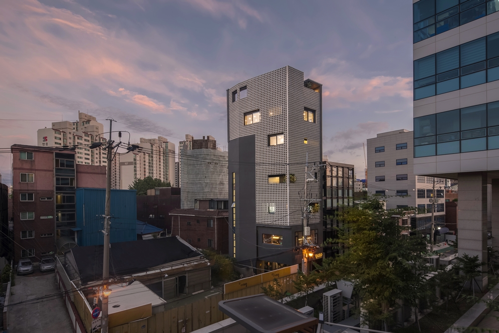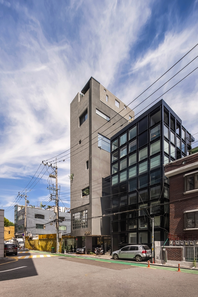 Seongsu-dong has been migrated by many people due to various developments, and new construction activities based on business feasibility have been actively pursued. The city, which was a part of the existing semi-industrial area, has a complex image mixed by old and new as new architectures of various colors come in. The owner requested the maximum rental income at the same time as his residence. The building is an individual property but at the same time plays a public role in creating the urban environment. It is also the architect's issue to find alternatives that can satisfy both of these attributes. We needed a device to properly connect these two attributes and suggested skins to cover the building. The skin we propose is neither fully open nor fully closed. Opaque skins filter the urban space and private space obscurely and serve as mediators to create non-conflicting relationships.