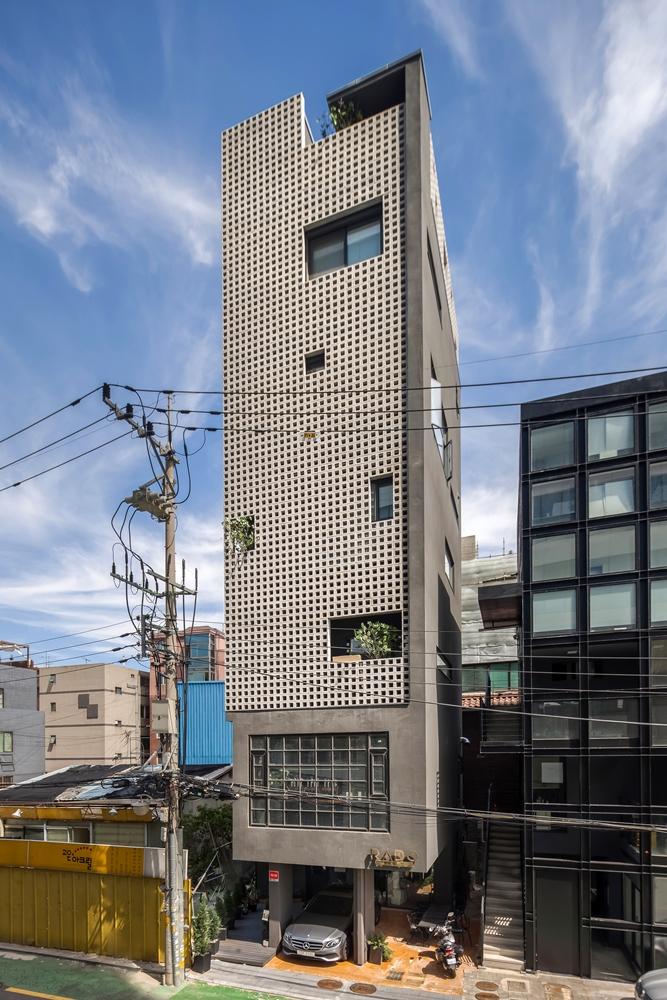 Seongsu-dong has been migrated by many people due to various developments, and new construction activities based on business feasibility have been actively pursued. The city, which was a part of the existing semi-industrial area, has a complex image mixed by old and new as new architectures of various colors come in. The owner requested the maximum rental income at the same time as his residence. The building is an individual property but at the same time plays a public role in creating the urban environment. It is also the architect's issue to find alternatives that can satisfy both of these attributes. We needed a device to properly connect these two attributes and suggested skins to cover the building. The skin we propose is neither fully open nor fully closed. Opaque skins filter the urban space and private space obscurely and serve as mediators to create non-conflicting relationships.