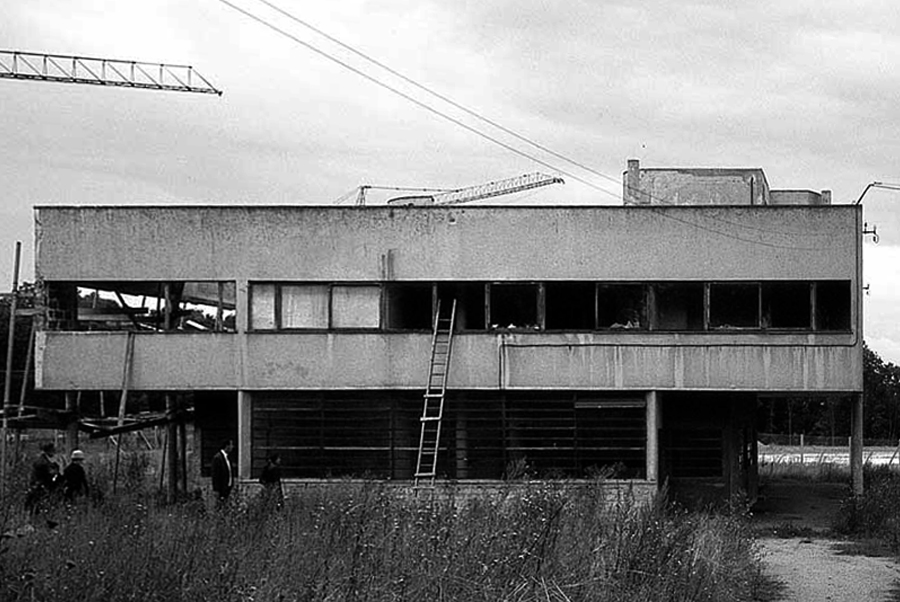 전쟁 기간에는 이곳을 독일군과 미군이 번갈아 가며 사용하였는데, 전쟁 통에 깨끗이 사용되었을 리 없다. 6년이 지나고 전쟁이 끝난 1945년. 돌아온 사보아 가족을 맞이하는 빌라 사보아는 거의 쓰러지기 직전의 폐허였다. 사보아 씨는 보수하지 않고 떠났고 빌라 사보아는 그렇게 버려진다. 10년 넘게 방치되던 빌라 사보아는 토지와 함께 1958년 푸아시 마을에 수용된다. 공식적인 소유권이 공공으로 이전된 것이다. 푸아시 마을은 빌라 사보아를 보수해서 마을 청소년 센터로 한동안 사용한다. 본래 주택이었으니 근린생활시설 정도로 용도변경했다고 생각할 수 있겠다. 몇 년 지나지 않아 학교가 부족했던 푸아시 마을은 청소년 센터로 사용하고 있던 빌라 사보아를 철거하고 학교 단지를 짓기로 결정한다. 푸아시 마을의 입장에서는 적절하고 당연한 판단이었을 것이다.