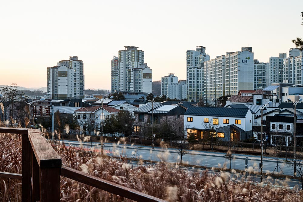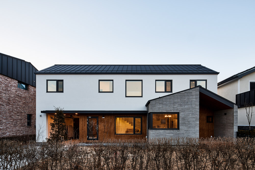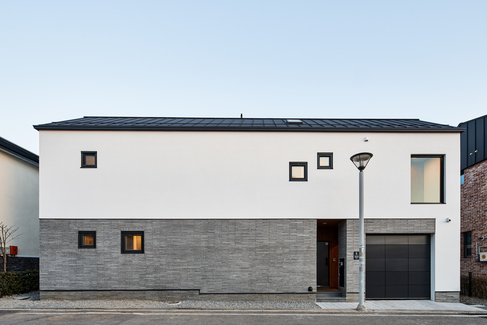 'Damdam Heon' in Asan is a simple detached house that resembles the client's calm heart, rather than boasting himself, and it blends in with the surroundings. It was planned to place a long mass parallel to the back road on a rectangular site and add a small porch that could easily lead to the southern courtyard. Although its appearance looks simple, the spaces with abundant light were designed to give pleasure over time through small interior elements.
