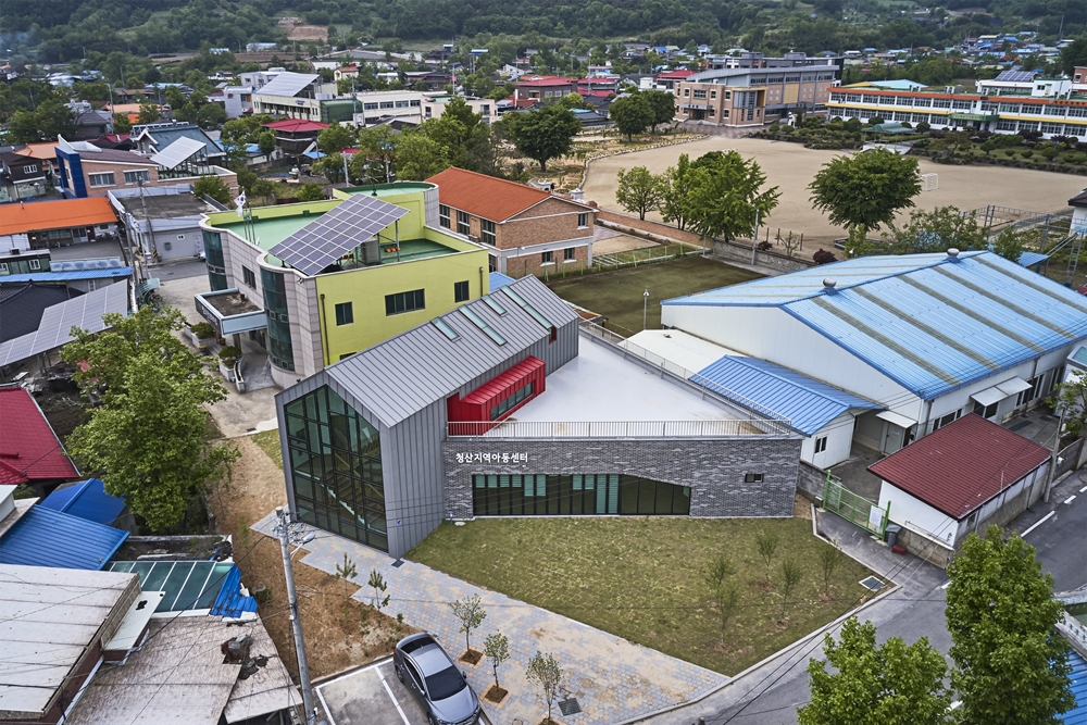 옥천의 지역아동센터는 출발이 남다르다. 소외계층 아이들에게 꿈과 희망을 심어준다는 사회공헌 사업의 일환으로 SBS에서 여러 해째 진행되고 있는 프로젝트 중 하나이다. 30도가 넘는 더운 날씨에 찾은 현장에서 청산면의 아이들은 컴퓨터게임과 스마트 폰으로 여름방학의 하루하루를 보내고 있었다. 안전하고 다양한, 그들만의 특별한 놀이공간을 만들어 주는 것이 첫 번째 과제였다. 4개의 마당과 5개의 놀이공간을 제안했다. 여름에는 물놀이, 겨울에는 눈놀이, 때로는 공놀이 공간으로 탈바꿈 하는 놀이마당은 청산 청소년문화의 집과 연결하여 초등학교 하교 길에 자연스럽게 찾아오는 공간이 된다.