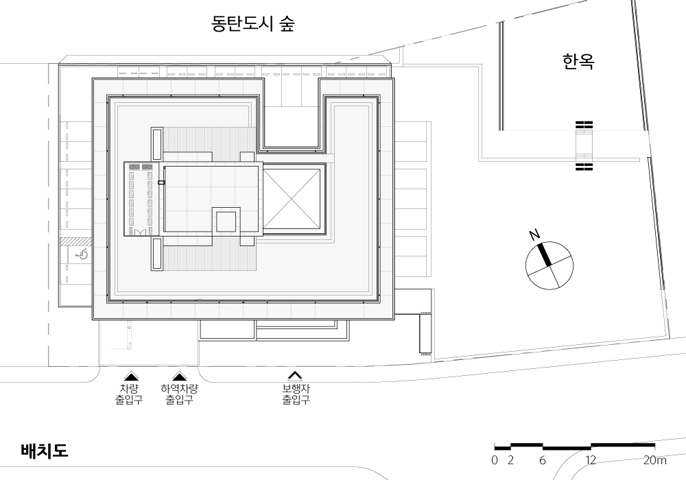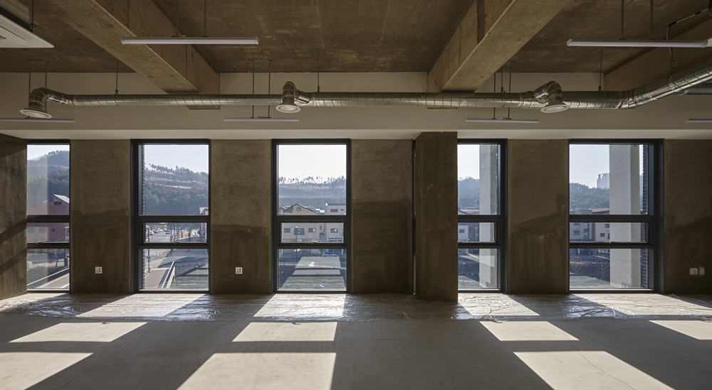 First of all, the design intent was by increasing the density of construction according to the maximum floor area ratio so only securing necessary area not the more. Second, it was designed to communicate with the beautiful natural scenery while harmonizing with the surrounding buildings.