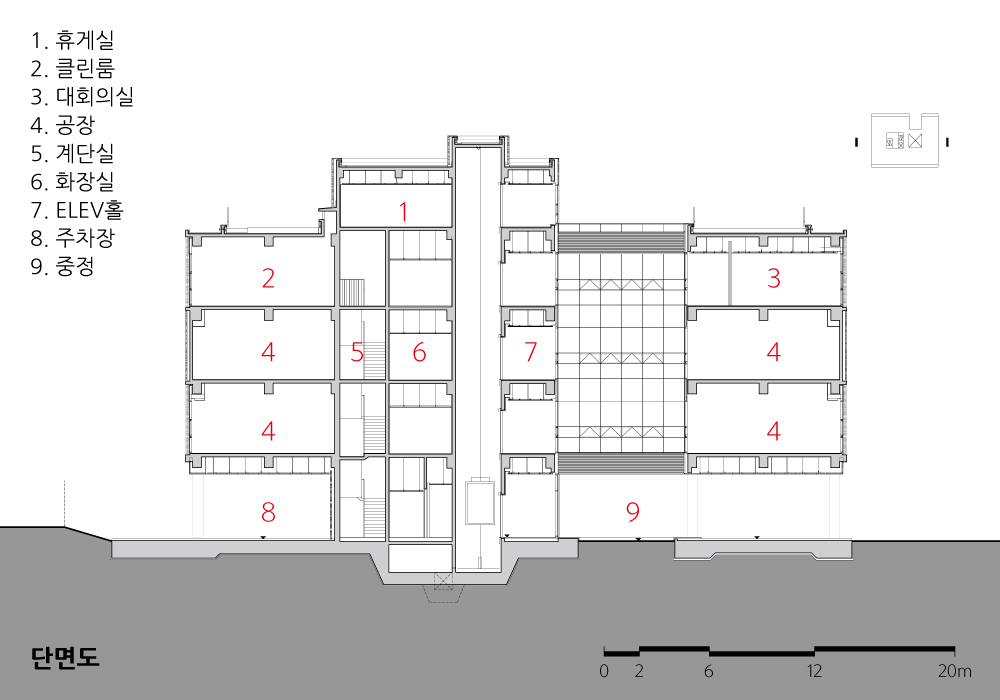 Song-Do Industry corp Dongtan Office Building Architect | Kang, Seongchan_Han-guk Architects & Engineers Client | Songdo Industry Supervisor | Park, Chinyoung _ Architects DDaDDT Construction | Park, Jongguk _ BUWON Construction Project team | Kim, Jangkwang / Choi, Changnam / Lee, Insuck / Ku, Hyungmo Location | 21-2, Dongtanchidongcheon-ro 4-gil, Hwaseong-si, Gyeonggi-do, Korea Program | Urban Life Related Factory Site area | 3,029.20㎡ Building area | 929.27㎡ Gross floor area | 2,985.18㎡ Building to land ratio | 30.68% Floor area ratio | 98.55% Building scope | 5F Structure | RC Exterior finishing | Exposed Concrete, Clay Brick, Aluminum Sheet Interior finishing | Deco Tile, Cement Mortar Design period | Sep. 2017 ~ Dec. 2017 Construction period | Apr. 2018 ~ Dec. 2018 Photograph | Kim, DaeJung Structural engineer | Salim Engineering Mechanical engineer | JungYoen Engineering Electrical engineer | JungYoen Engineering Fire engineer | JungYoen Engineering |