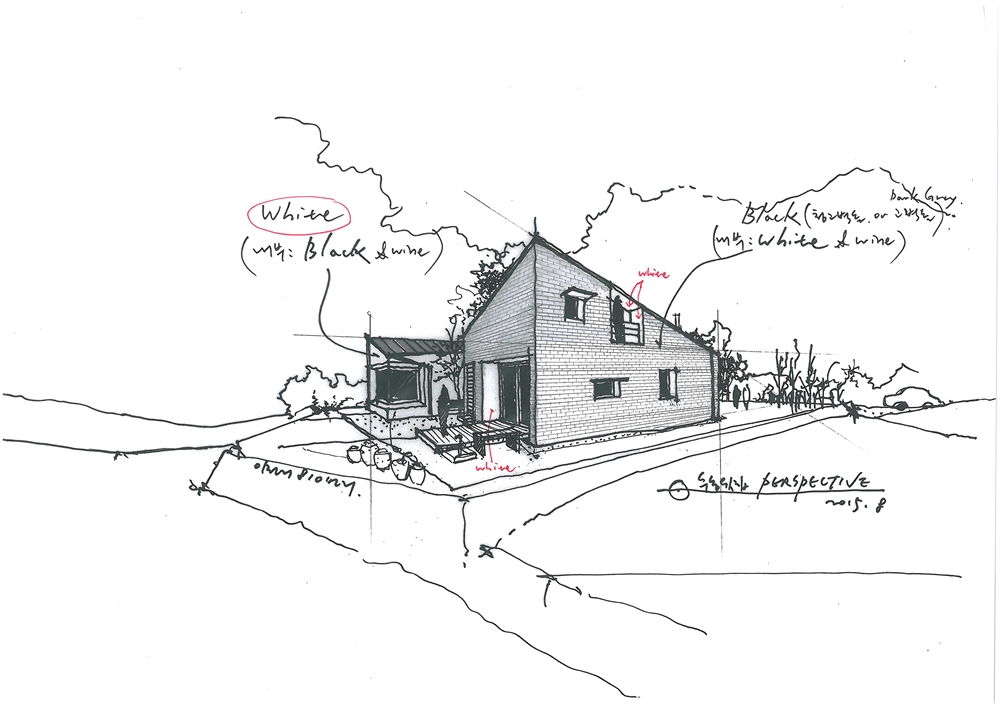 그 집에서 살아갈 이들이 수십 년 동안 머릿속에 조금씩 파편처럼 그려오던 꿈을 하나의 강직한 물리적 실체로 눈앞에 펼쳐주고, 세월이 지난 후에 우연히 만나 따뜻한 미소로 이후에 쌓인 소중한 삶의 이야기를 들을 수 있다면 어떨까? 이를 위해서 건축가의 욕망을 누르고 건축주의 바램을 물리적으로 현존하게 하고, 그 물리적 실체 사이를 사는 이들이 시간의 때가 묻은 삶의 궤적들로 채워나가는 집이 ‘내’가 믿고 욕망하는 ‘좋은 집’이다. 건축가의 이러한 욕심을 담아내기 위해 건축주 가족의 소망에 귀를 기울이고, 자연을 조응하며 소소한 일상과 풍경, 햇살을 담고자 하였다. 겉에서 보이는 것 뿐만 아니라 집 안에서도 느슨하게 자연과 하나 되어진 풍경을 만들고자 하였으며, 이렇게 배치에 대한, 공간의 쓰임새에 대한, 형태와 재료에 대한 그리고 창에 대한 고민들이 시작되었다.