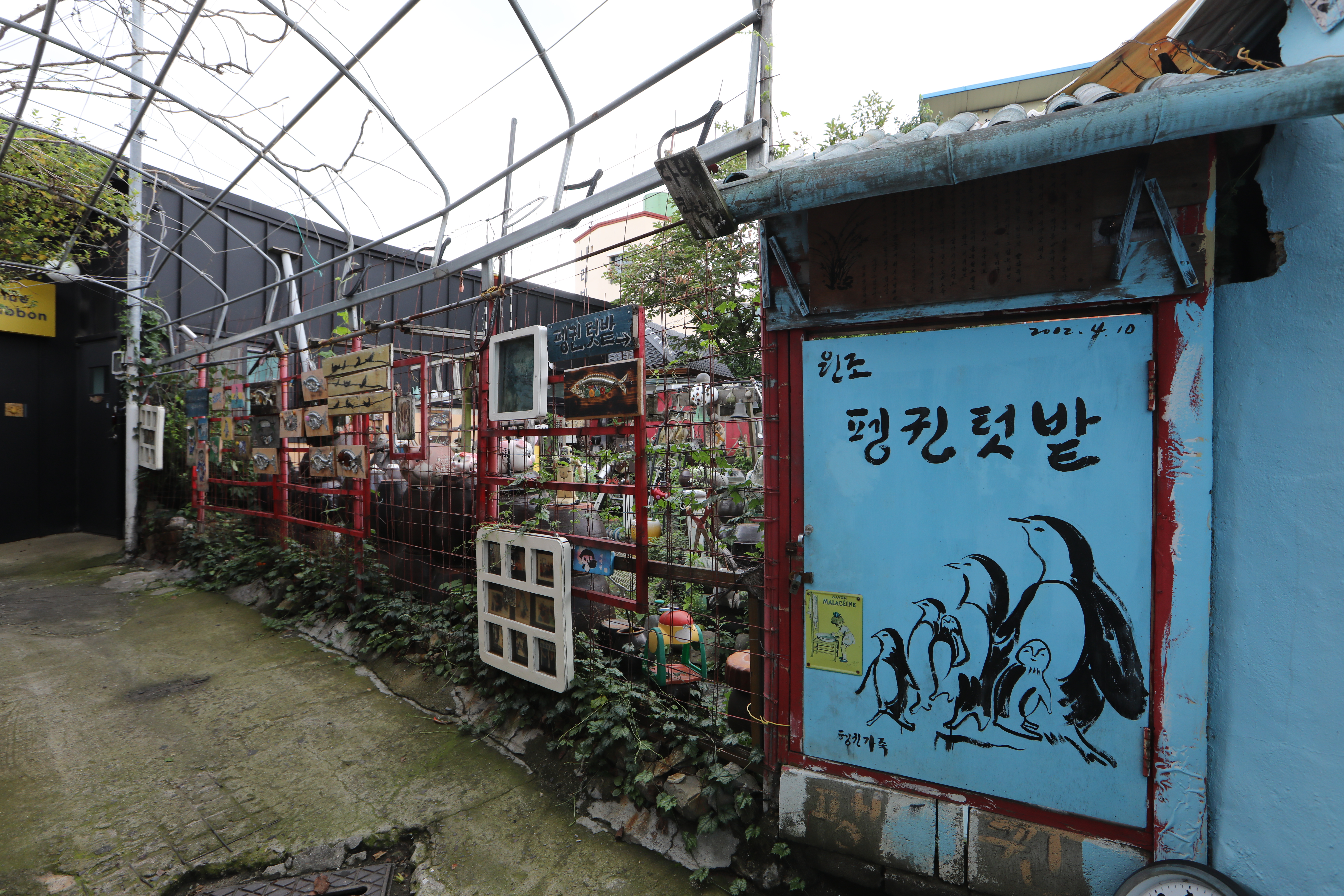펭귄마을은 양림동 양림커뮤니티센터 남측에 마련된 ‘공예특화거리’를 포함한 인근 주변을 이른다. 이곳에는 지금의 펭귄마을을 있게 한 정크아트 예술가 김동균 촌장이 머무는 ‘펭귄마을 촌장실’을 비롯해 은반지, 도자기, 나무도마 등을 다루는 공예가게들이 있다. 근처에 마련된 부스에서는 광주 MBC 진행자들이 라디오 방송을 진행한다. 펭귄마을의 진면모를 볼 수 있는 곳은 골목이다. 한때 공동화 현상과 화재 등으로 폐허가 돼가던 마을과 이를 극복하려고 한 김 촌장과 주민들의 흔적이 간직돼 있다. 주민들은 버려진 생활용품들로 골목을 치장했고, 곳곳에는 텃밭들을 가꿨다. 골목은 처마 아래로 이어지기도 하고 우물터로 데려다 주기도 한다. 중장년들에겐 옛 시절을 떠올리게 하고, 젊은이들에겐 새로움을 선사하는 풍경이다.