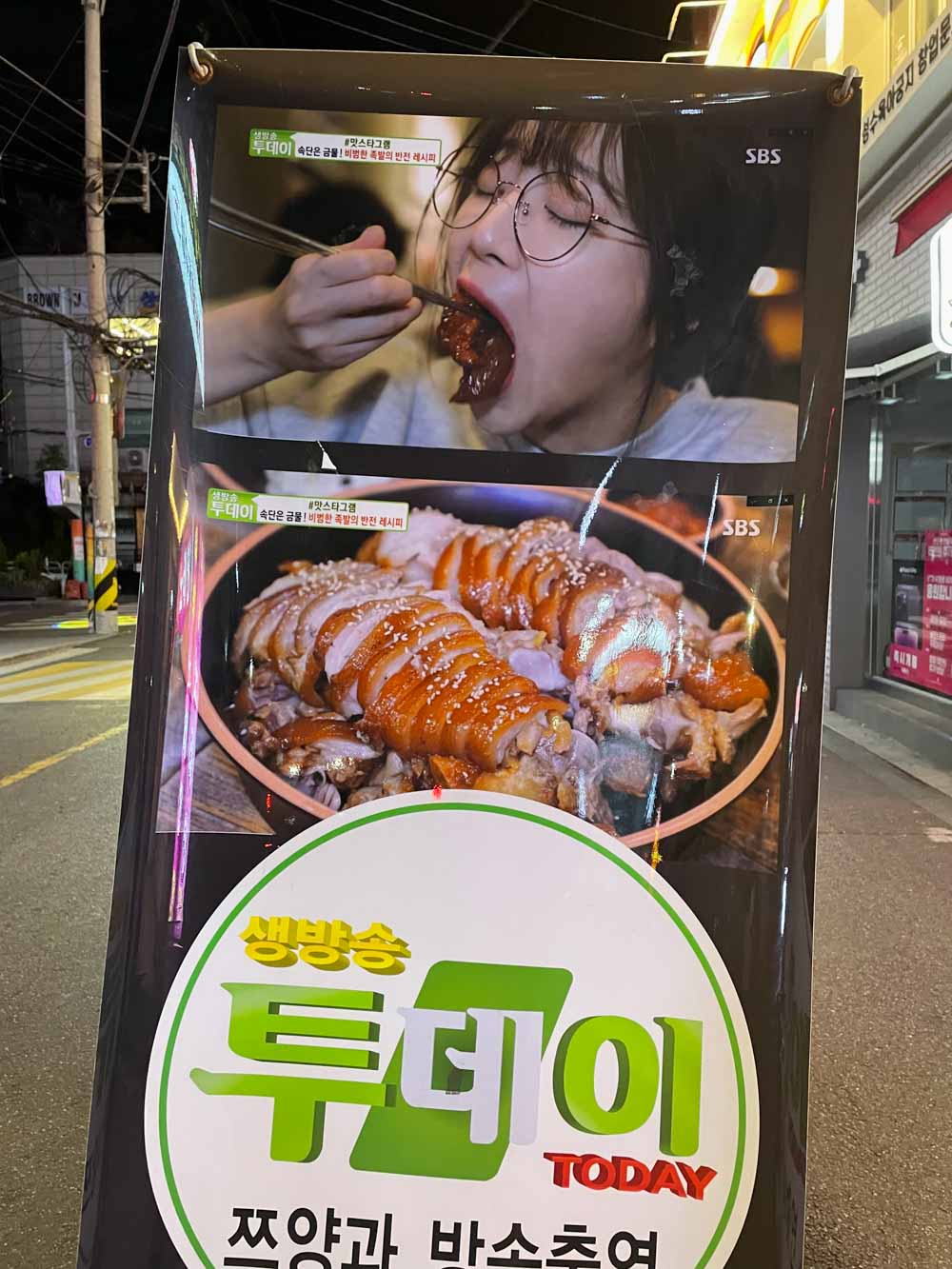 푸드 포르노(food porn)는 음식 광고, 음식 화보, 먹방 등에서 음식을 최대한 먹음직스럽게 강조하고 자극한 사진을 말한다. 식당 입면 또는 식당 앞 배너의 음식 사진은 마치 그 사진이 음식 정보를 알려주는 일을 하는 거 같다.<사진 1>