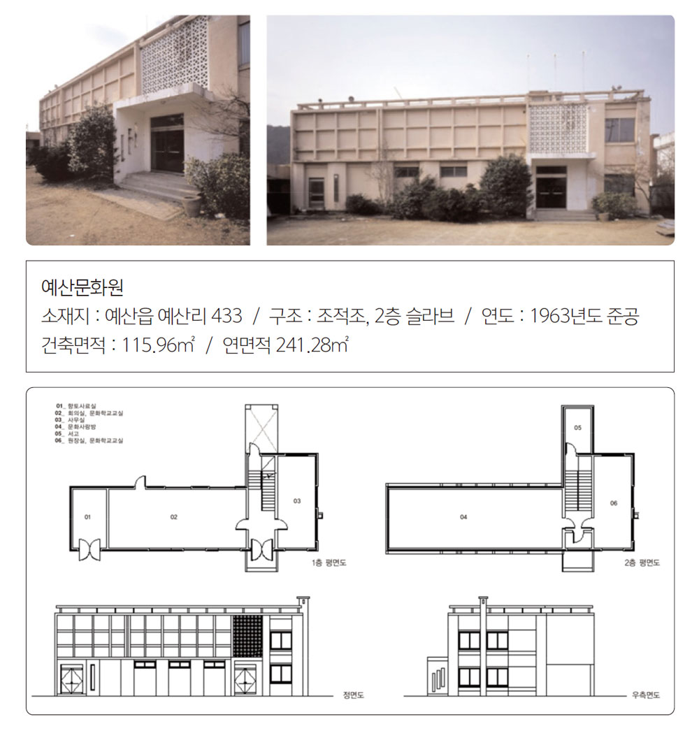 현재 도서관으로 사용되고 있으며, 예산교육청 청사로 35년간 사용하였다. 외피는 백색의 벽면을 바탕한 긴창은 수직감을 돋보이게 하고 있으며, 1층과 2층의 창의 크기를 비례적으로 조절함으로써 하중감이 느껴지게 디자인되었다. 입구 정면에 부분적으로 루버를 사용해 정면성을 부가시키고 있다.