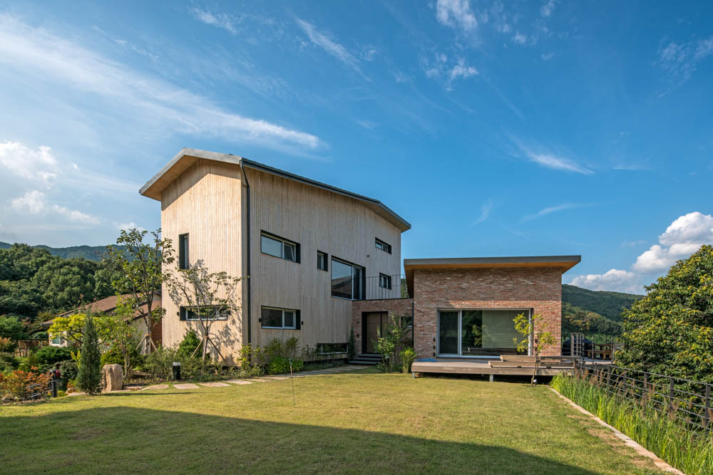 1 The client requesting design is a scholar who has taught many students at the College of Agriculture and Life Sciences, Seoul National University, and has cultivated many talents in the Korean timber industry. While requesting the design of a house for the family to live in after retirement, the client invested a lot of time in researching this house as a research project of CLT (Cross-Laminated Timber) so that the designer only had to meet the function and form of the house according to architectural structure. The client, a specialized wooden construction company Stuga, and the designer Kawa Design have built trust for a long time. We formed a team quite early. Before the design, we worked together while exploring the Japanese market, where CLT was manufactured and constructed earlier than in Korea. With a lot of experience in new wooden construction methods, Stuga is a company that has collaborated on many projects with Kawa Design.