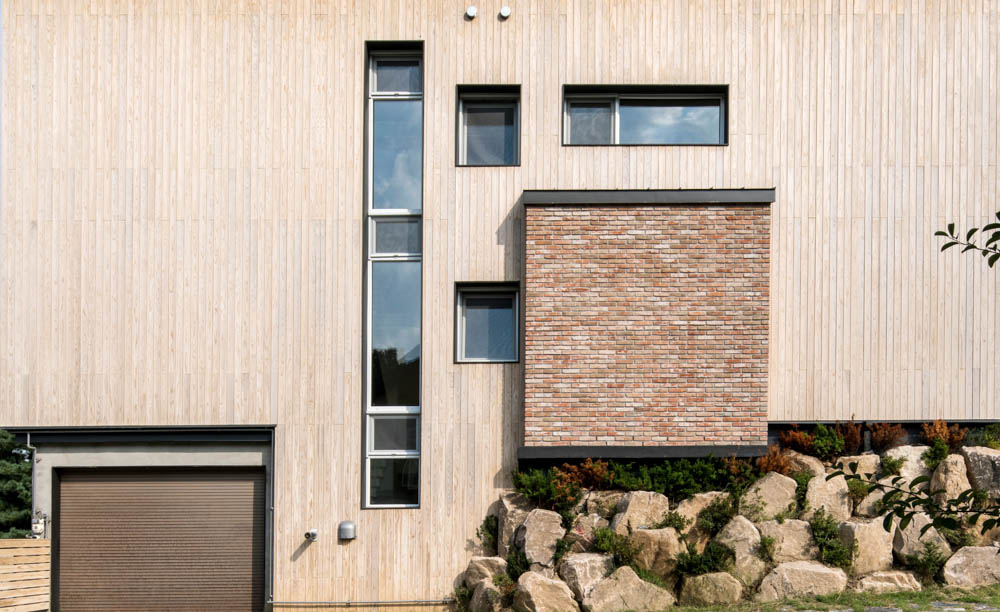1 The client requesting design is a scholar who has taught many students at the College of Agriculture and Life Sciences, Seoul National University, and has cultivated many talents in the Korean timber industry. While requesting the design of a house for the family to live in after retirement, the client invested a lot of time in researching this house as a research project of CLT (Cross-Laminated Timber) so that the designer only had to meet the function and form of the house according to architectural structure. The client, a specialized wooden construction company Stuga, and the designer Kawa Design have built trust for a long time. We formed a team quite early. Before the design, we worked together while exploring the Japanese market, where CLT was manufactured and constructed earlier than in Korea. With a lot of experience in new wooden construction methods, Stuga is a company that has collaborated on many projects with Kawa Design.