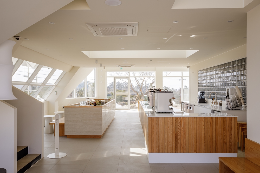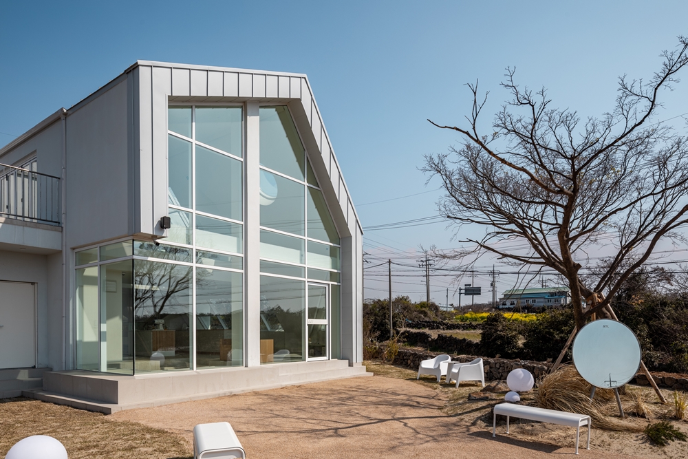 흐르는 바람의 촉감을 느끼며 ‘쉼’과 여유를 만끽할 수 있으면서 도시보다 느리게 흐르는 공간을 어떻게 만들 수 있을까, 고민했다. 이 대지의 느낌은 따뜻했다. 무엇이든 품을 수 있는 대지였다. 주변의 흐름에 방해되지 않게 흐르는 듯 자연스러운 공간이다. 하늘에 뿌려놓은 부드러운 구름과 바다의 조화가 마음까지 말랑말랑하게 만든다.