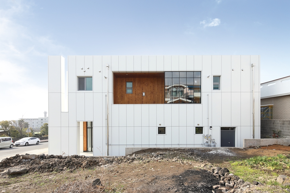 Counter window structure eased natural ventilation in Seo Kwi po’s temperate and humid oceanic climate. Additional insulation while internal finish was constructed to prevent condensation. Also thermo-reflective insulation was additionally constructed to block the radiant heat from hot sunlight and white aluminum composite panel was constructed for reflecting the sunlight. In order to emphasize the vertically patterned facade and prevent the contamination of the white exterior wall, it was constructed by hiding the thickness.