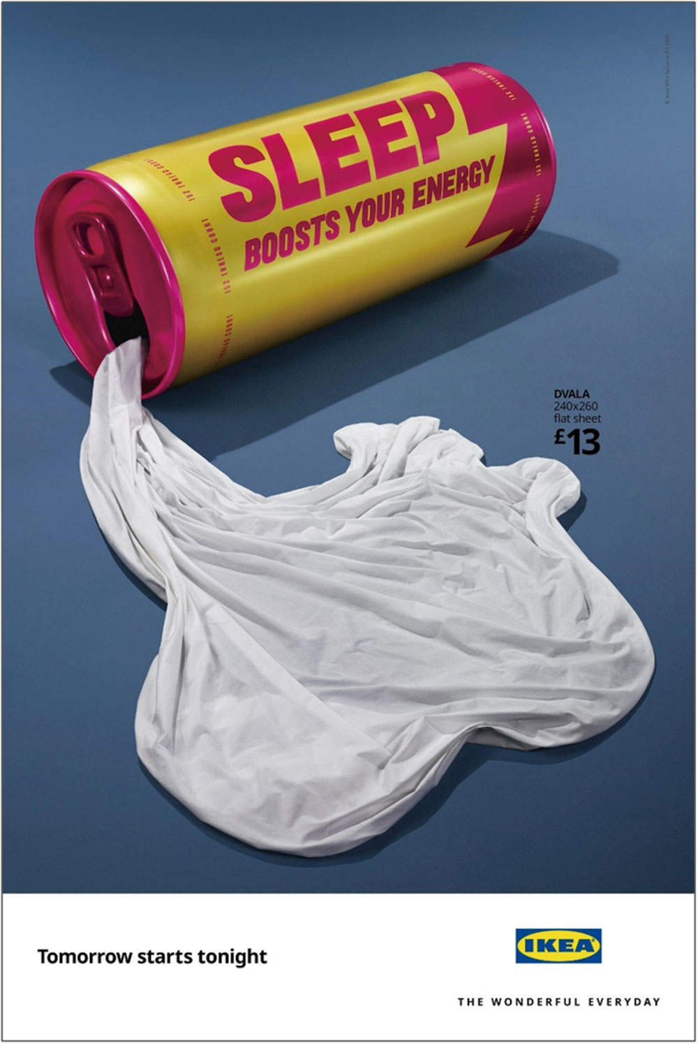 이케아는 지난 9월 수면부족이나 수면의 질이 좋지 않아 고민하는 현대인의 고민을 파고드는 인쇄 및 옥외광고를 만들어 내보냈다. 에너지 드링크, 노화 방지 크림, 비타민이 담겨 있어야 하는 용기에서 침대 시트, 이불, 베개가 나오는 한 컷의 광고 사진과 카피를 통해 수면의 중요성을 직관적으로 표현했다. 그런데 내게는 잘 자야 한다는 메시지보다 내일은 오늘 밤부터 시작된다는 카피가 더 극적으로 다가왔다. 맞다, 내일은 어디서 뚝 떨어지는 것이 아니라 내가 잠자리에 드는 오늘 밤부터 시작되는 것이다.