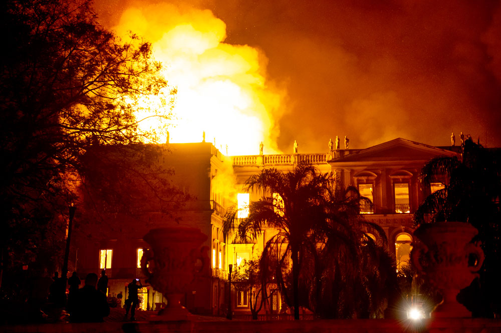 이곳에 화재가 발생한 것은 2년 전인 2018년 9월 2일이다. 1층 오디토리엄의 냉난방 시스템에서 발생한 불꽃은 삽시간에 박물관 전체로 번졌다. 소방차가 출동하고, 화재 진압을 위해 많은 소방관들이 노력했지만 박물관의 전소를 막지 못했다. 박물관의 내부와 전시 중이던 유물을 모두 태우고, 모든 지붕이 내려앉은 뒤에야 불길이 잡혔다. 석재로 만들어진 외벽은 새까맣게 타버린 내부와 멀쩡한 외부가 대조적이었다. 각종 유물 2천만 점과 동물 표본 650만 점, 식물 표본 50만 점 정도가 있었는데, 일부만 안전하게 옮겨지고, 90% 정도의 대다수 유물은 소실되고 말았다. 브라질 국립박물관이 자랑하던 희귀 유물들은 이제 사진과 세밀화로 그려진 기록물로만 남았다.