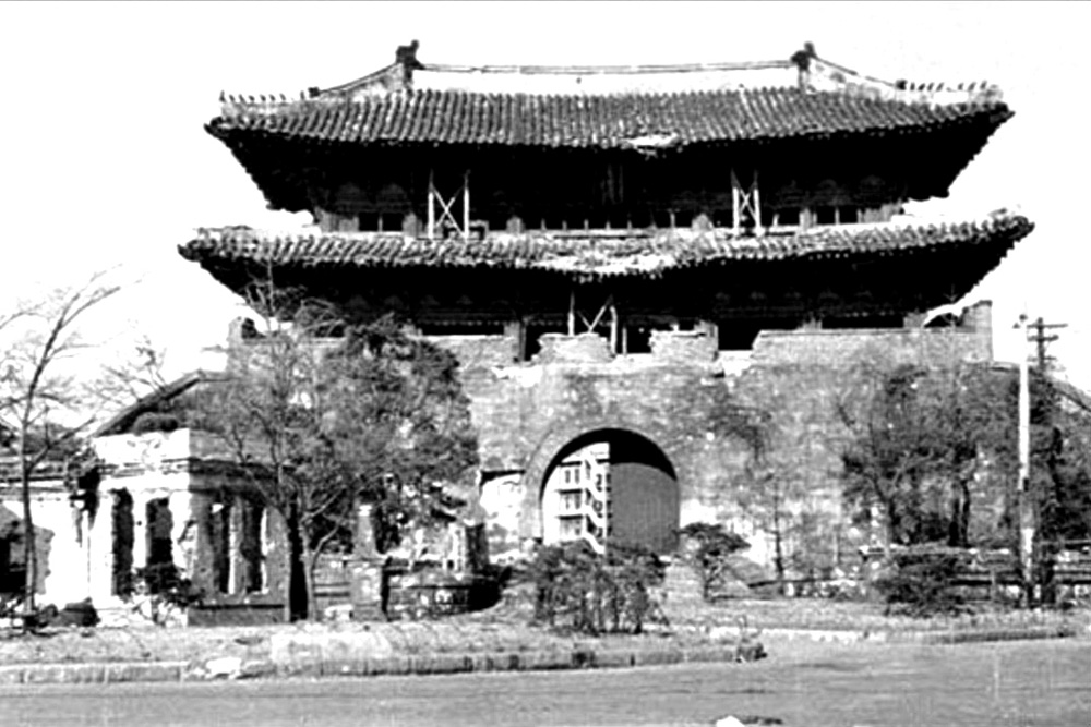 광복을 맞은 숭례문은 한 번 더 큰 위기를 맞는다. 1950년 한국전쟁이 발발한 것이다. 서울은 전쟁의 한복판이 되었고, 폭격과 시가전 속에서 숭례문은 큰 상처를 입는다. 전쟁 중 파손된 부분은 1953년 7월에 이루어진 휴전협정을 전후해서 임시로 보수가 이루어진다. 시멘트로 깨지거나 떨어져 나간 부분을 매우는 수준이었다. 이렇게 전쟁의 위기를 넘긴 숭례문은 1961년부터 1963년까지 1년 10개월, 약 2년간 전면 해체 공사가 이루어진다. 세 번째 재축이다.
