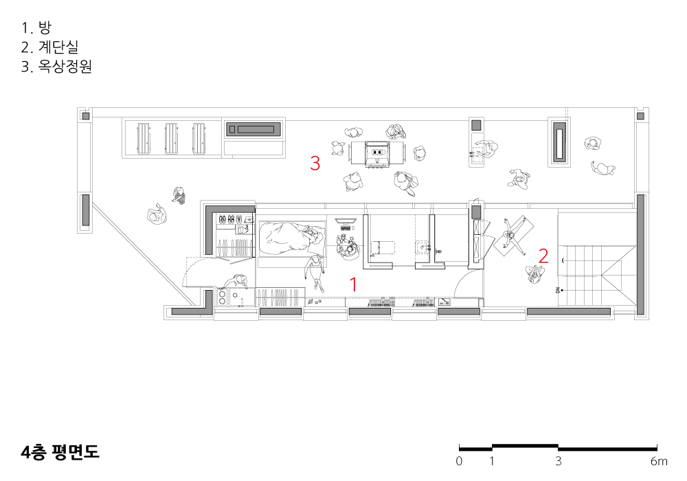 한국의 소규모 건축물들은 건축법에 의해서 그 형태가 결정되는 경우가 많다. 이번 프로젝트가 진행된 대지는 18미터×8.4미터 규모의 모서리가 잘려나간 작은 땅이기에 ‘최대의 건폐율과 최대의 용적률을 확보해야 한다’는 최고의 우선순위 아래 건축의 규모와 형태가 결정된 상태로 진행되었다.