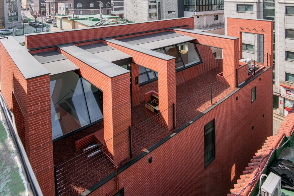 | 세 개의 면, 다섯 개의 켜 설계자 | 김경진 _ 건축사사무소 샴건축 건축주 | 김경진 감리자 | 시나 건축사사무소 시공사 | 김경진 설계의도 구현 | 건축사사무소 샴건축 대지위치 | 인천시 남동구 구월로 115번길 66 주요용도 | 근린생활시설 대지면적 | 154.90㎡ 건축면적 | 92.71㎡ 연면적 | 302.13㎡ 건폐율 | 59.86% 용적률 | 192.31% 규모 | 4F 구조 | 철근콘크리트구조 외부마감재 | 칼라콘크리트 블록(두라스텍 탱고레드), 블랙 스테인레스스틸 내부마감재 | 친환경페인트, 포세린타일, 멀바우집성목 설계기간 | 2017. 12 - 2018. 07 공사기간 | 2018. 07 - 2019. 12 사진 | 구의진 구조분야 : 베이스구조 기계설비분야 : 코담기술단 전기분야 : 코담기술단 소방분야 : 코담기술단 |
