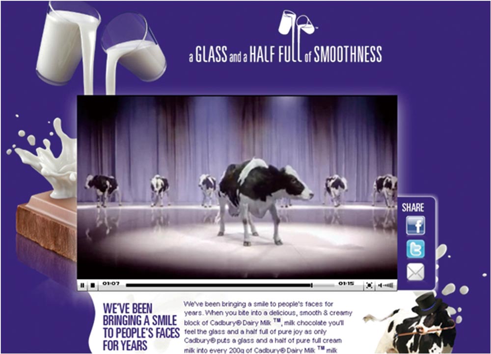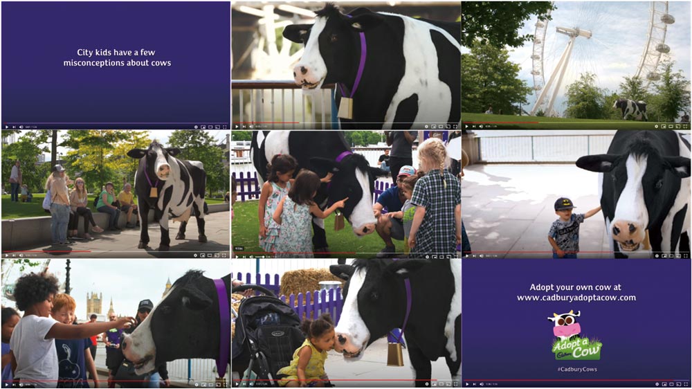 젖소는 캐드버리에게 아주 중요한 존재이다. 젖소가 캐드버리 밀크초콜릿에 들어가는 신선한 우유를 공급하기 때문이다. 그래서인지 캐드버리 광고에는 소가 자주 등장한다. 영국의 캐드버리는 ‘젖소입양캠페인’을 펼쳐 사람들의 관심을 끌기도 했다. 런던에 있는 어린이 중 3분의 1은 우유가 젖소에게서 나온다는 사실을 모르고, 8명 중 1명은 소가 ‘음매’하고 운다는 사실을 모르고 있다고 한다. 캐드버리는 젖소가 얼마나 친절한지 알리기 위해 버튼스(Buttons)라고 이름 지은 초현실적인 로봇 암소를 만들어 런던의 사우스뱅크센터에 데리고 갔다. 그리고 커다란 암소를 만나 신기해하고 쓰다듬는 아이들의 모습을 영상에 담아 내보냈다.