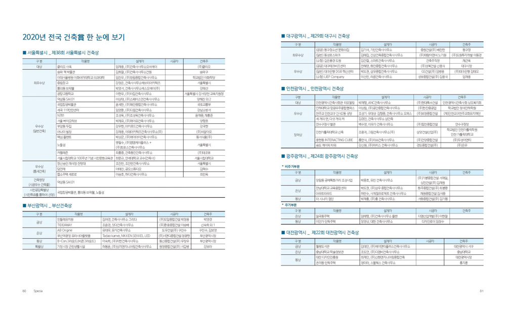 2020년 전국 건축賞 한 눈에 보기 2021.1