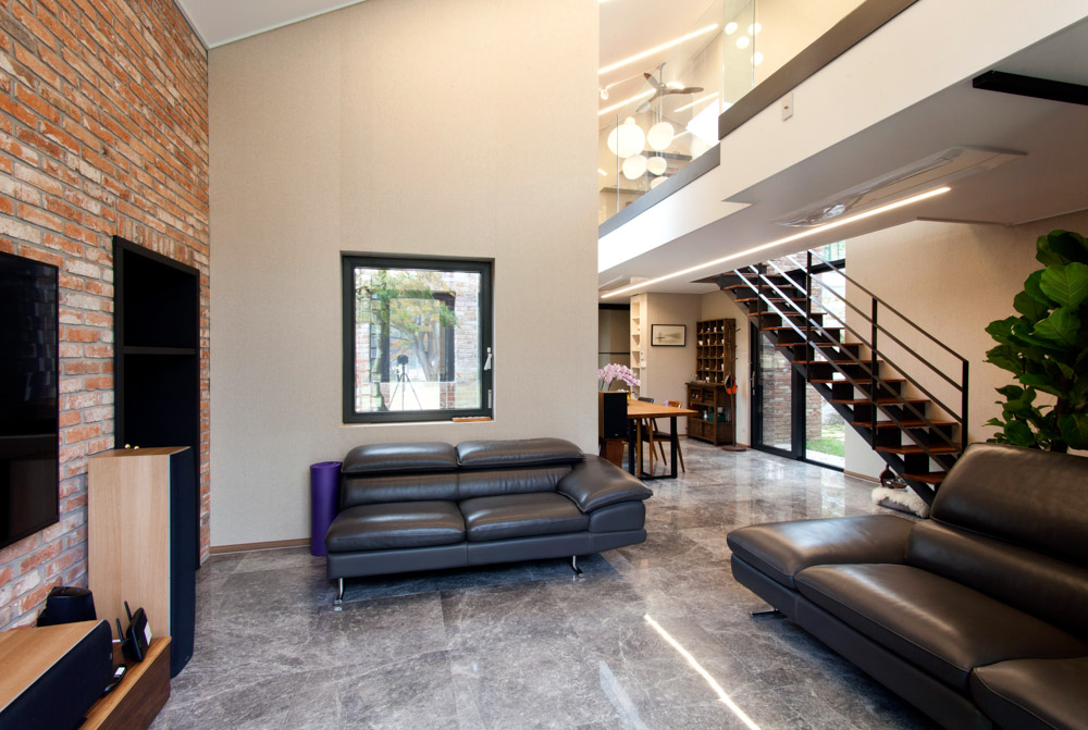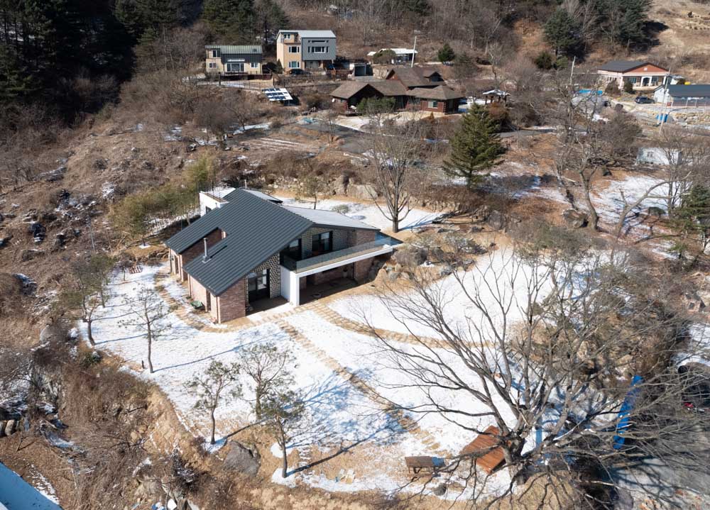 Oh U House Architect | Shin, Mincheol _ WE Architects Client | Yoo, Byungok / Park, Soonok Supervisor | Shin, Mincheol _ WE Architects Construction | Self-contracting Location | 23-1, Tungjeom-gil, Seojong-myeon, Yangpyeong-gun, Gyeonggi-do, Korea Program | Residential Site area | 1,963.00㎡ Building area | 116.40㎡ Gross floor area | 188.42㎡ Building to land ratio | 5.93% Floor area ratio | 9.60% Building scope | 2F Structure | RC Exterior finishing | Broken brick, CUBLOC Interior finishing | Marble, Wallpaper Design period | 2019. 05 ~ 2019. 06 Construction period | 2019. 07 ~ 2019. 12 Photograph | Won, Joonkyung Structural engineer | Sunrin Rescue Engineer Office Mechanical engineer | Haewon technology Electrical engineer | Chunghyo Hitech Fire engineer | Haewon technology |