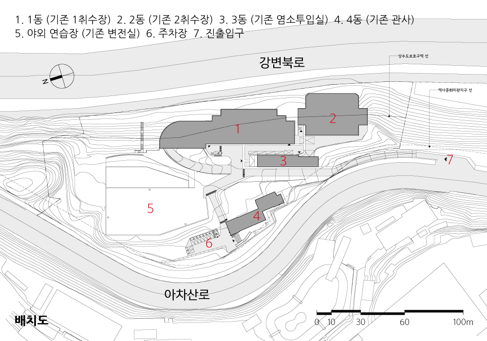 The old name for the Seoul St. Art Creation Ctr. was Gui water intake station. Since 1972 the intake station operated with its four wings by adding an official residence in 1984. In 2011, Gui intake station stopped to operate, and it retired honorably by replacing a newly made Gangbook intake station. It was seeking for the second phase of its life after retirement.
