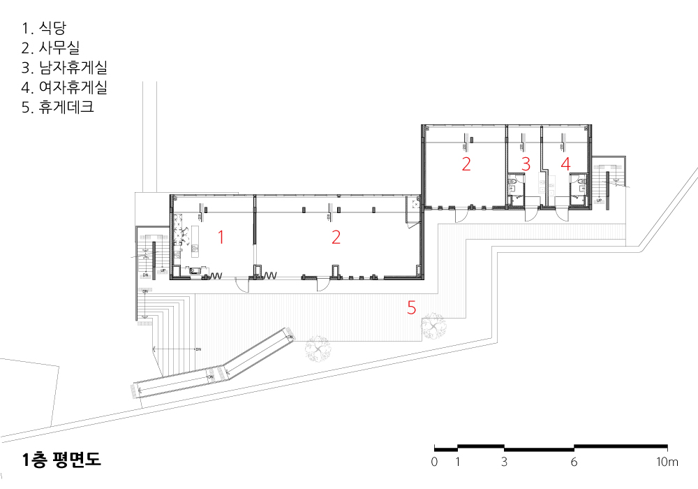 옛것과 새로움의 조화를 어떻게 건축적 텍스트로 옮겨야 하는가에 대한 고민과 집착 속에 설계는 시작되었고, 수많은 고민은 오히려 과정 속의 즐거움이었다. 경사지붕을 일부 철거하고 옥상 휴게데크를 조성하여 한강으로의 조망을 선택하고, 후정을 마련하여 새로운 공간을 해석한다. 기존 경사지붕은 천창을 만들어 빛을 끌어들임으로 공간의 변화를 꾀한다.