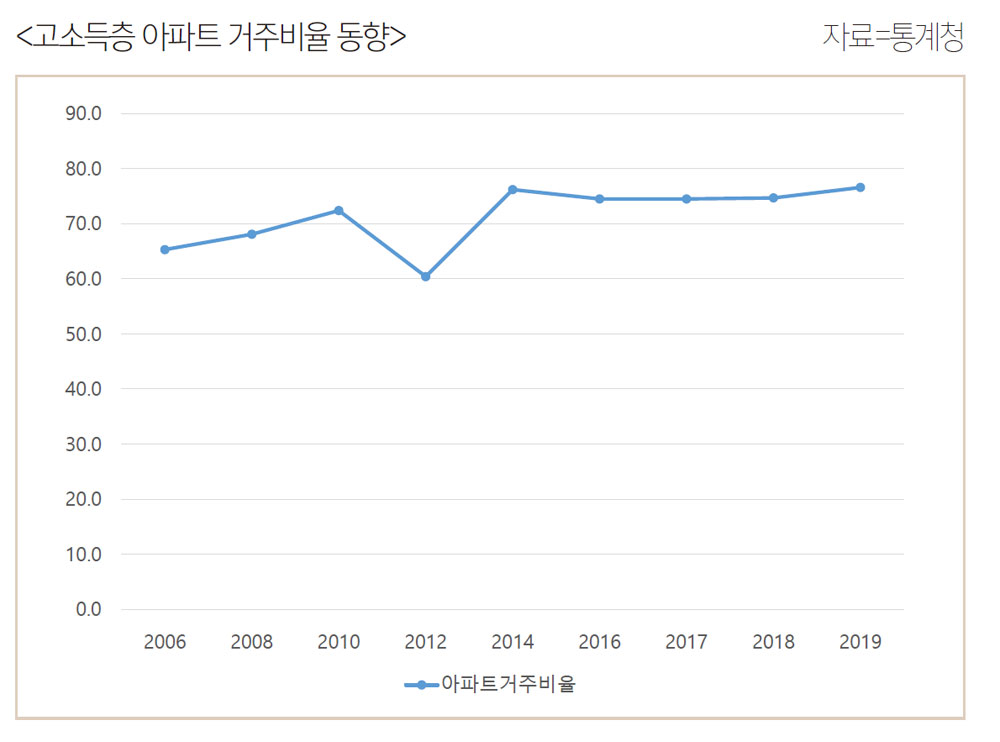 우리나라 국민의 주택유형별 거주 비율에서 아파트 거주 비율은 50%를 넘어섰고, 국토교통부가 발표한 2019년 주거실태조사의 지역별 소득계층별 주택유형에 따르면 아파트에 거주하는 비율은 저소득층은 29.1%, 중소득층 56.2%, 고소득층 76.6%로 고소득자일수록 아파트에 거주하는 비율이 높다. 계속되는 집값 상승과 까다로워진 대출 여건들을 고려하였을 때 이 비율은 점차 양극화가 두드러질 것으로 보인다. 건축주들의 대다수가 고소득층인 것을 감안하면 아파트 인테리어는 건축사사무소와 무관하지 않다.