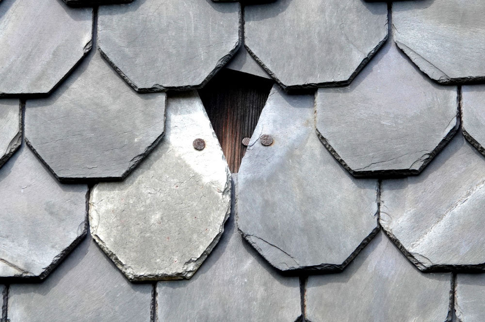 슬레이트(slate)는 점판암(粘板岩)의 영문명이다. 점판암(粘板岩)은 점토(粘土)가 굳은 암석인데 넓적한 판(板) 형태로 쉽게 떨어져서 예부터 지붕재료로 사용했다. 그래서 영문으로 slate roof를 검색하면 다양한 돌지붕 이미지가 검색되는 것이다. 국내에서는 60~70년대 단독주택 지붕에 이 슬레이트(점판암)가 종종 사용되었다. 경사진 콘크리트 지붕 슬라브 위에 방수층과 모르타르로 보호층을 만들고, 가공된 슬레이트(점판암)를 못으로 고정했다. 이런 습식 구법의 슬레이트(점판암) 지붕은 거의 사라졌는데, 최근에는 클립으로 고정하는 건식 구법이 도입되면서 슬레이트(점판암) 지붕이 다시 사용되고 있다. 1972년 새마을 가꾸기로 농촌의 초가지붕을 석면 시멘트 골판으로 교체하면서, 슬레이트(점판암) 지붕의 이미지로 포장하고 싶었던 것은 아닐까, 하고 추측해본다. 멀리서 눈을 지그시 감으면 색깔은 얼핏 비슷해 보이기는 한다.