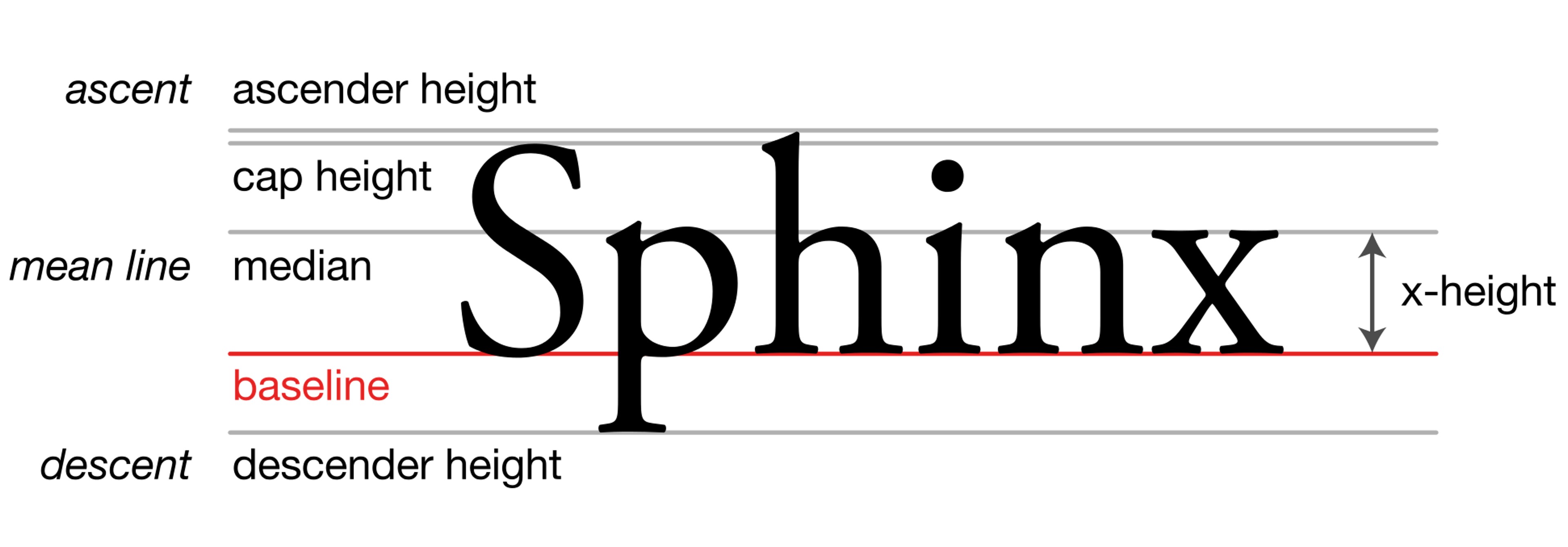 어느 대학에서 글꼴의 진화에 대한 강의를 하고 있었다. 라틴 알파벳은 대문자가 먼저 태어났고, 기원후 3세기 무렵에야 소문자가 나타났다. 로마인들은 글자를 쓸 때 두 개의 기준선을 그은 뒤 그 안에 글자에 채워 넣었다. 그런데 3세기 무렵부터 그 기준선 밖으로 뛰쳐나가는 글자가 생기면서 소문자가 탄생했다. 예를 들어 b, d, f, h, k, l은 평균선 위로 글자 선이 올라간다. 평균선 위로 올라간 부분을 ‘어센더(ascender)’라고 한다. 반면에 g, j, p, q, y는 평균선 아래로 선이 내려간다. 아래로 내려간 부분을 ‘디센더(descender)’라고 한다. 그에 따라 소문자는 크게 세 가지로 나뉘게 되었다. 어센더가 있는 글자, 디센더가 있는 글자, 어센더도 없고 디센더도 없는 글자. a, c, e… x, z 같은 글자다. 어센더와 디센더가 없이 키가 작은 글자의 폭을 ‘엑스하이트(x-height)’라고 한다. 그렇게 되면 소문자는 모두 4개의 기준선을 갖게 된다.<사진 1> 엑스하이트를 중심으로 어떤 글자는 위로 삐쳐 올라가고 어떤 글자는 아래로 삐쳐 내려간다. 이렇게 글자의 키가 들쭉날쭉하게 되자 글자 하나하나의 판독성이 높아지는 결과가 나타났다. 판독성이 높으면 가독성 또한 함께 높아진다.