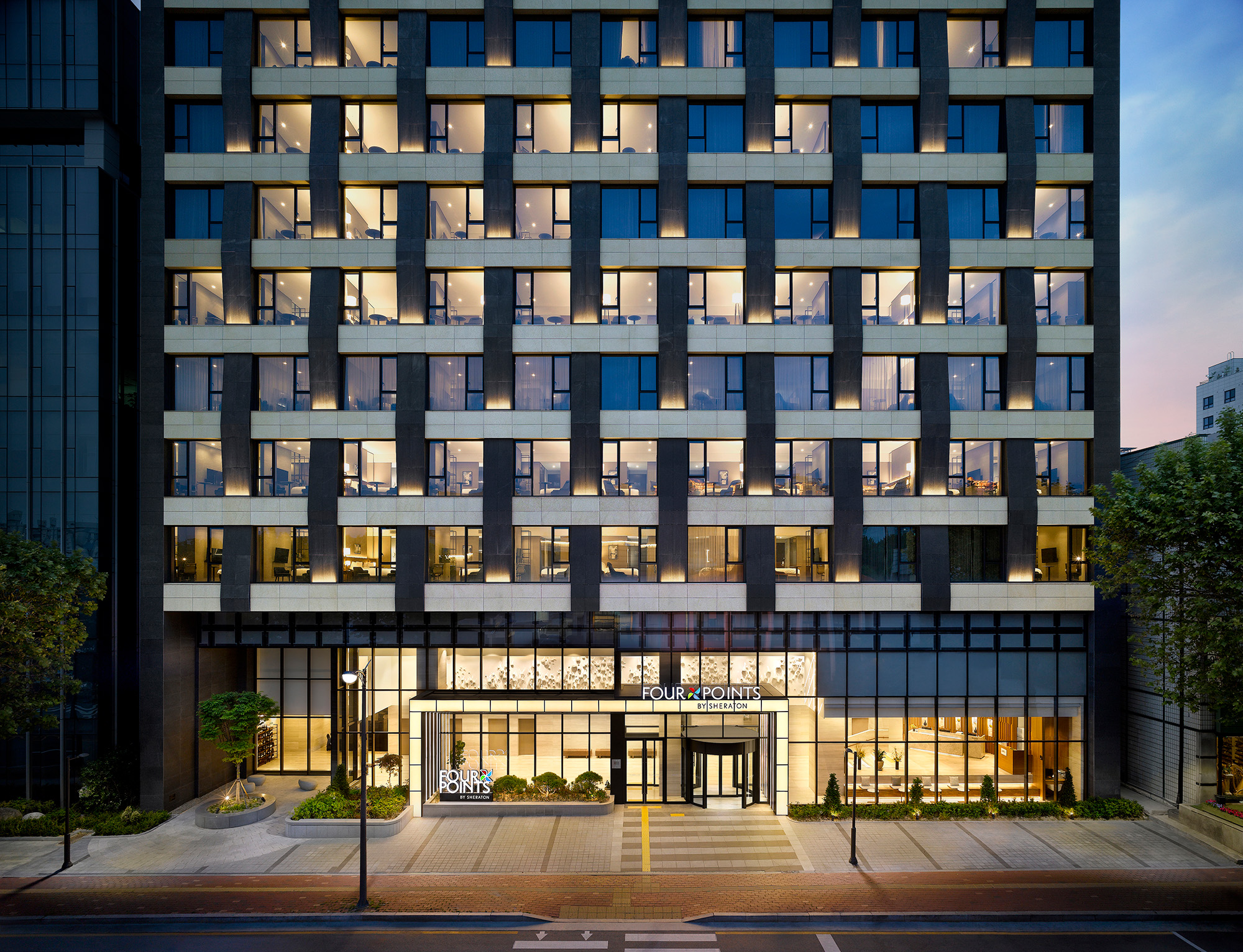 Four Points by Sheraton Suwon Hotel is situated at the heart of Suwon, where the past, present, and future coexist. Utilizing the element of 'weaving,' representing the temporal flow of the city, the hotel reinterprets the traditional patterns of nature and urban structure with a modern sensibility. The design aims to be concise and elegant, harmonizing with the surrounding landscape without disruption, as it respects the historical layers of the city.