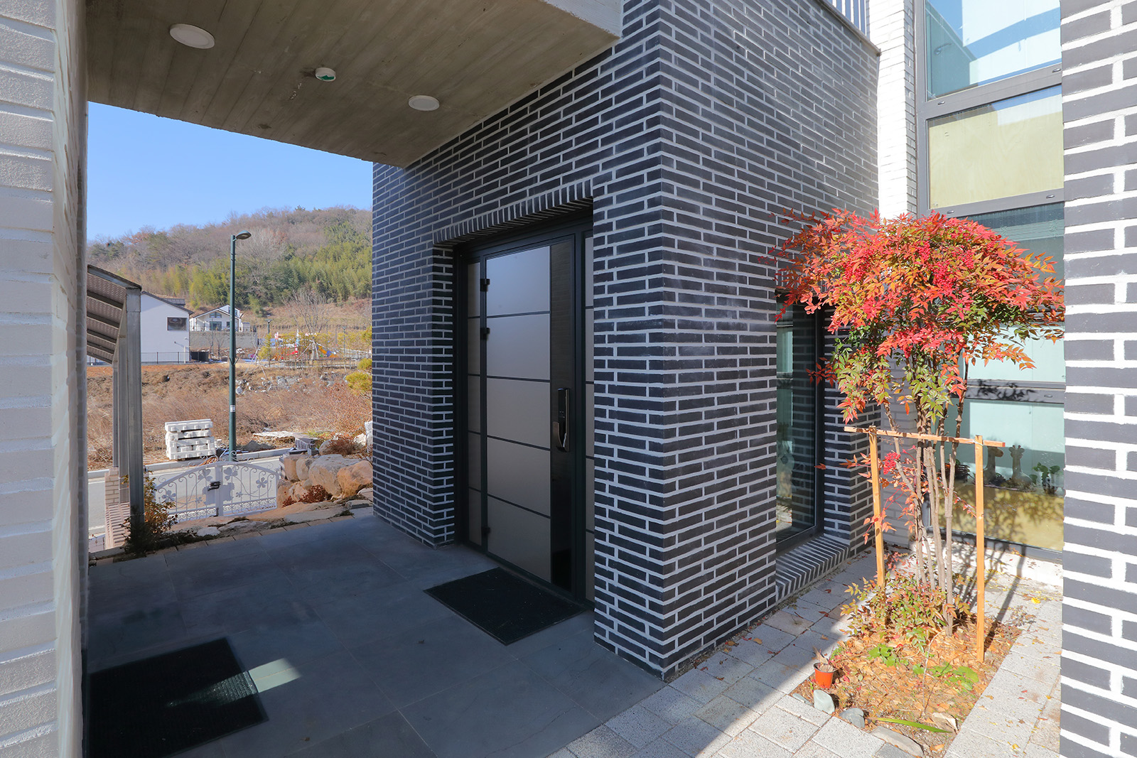 전면 도로에서 부지를 지나가면서 바라보는 주변 건물들의 얼굴은 의도된 계획 속에 만들어진 파사드가 아니다. 나는 건물을 기억하게 하고 싶었다. 다른 좌·우, 배면의 뷰는 도로에서 보이지 않으니, 전면을 지나가는 보행자도 건축물을 바라보며 담긴 이야기를 상상하고, 가족들도 사람들과 경관을 보며 새로운 기억들을 생성해 가는 공간을 만들어 보고자 했다. 이렇게 만들어진 영역이 브릿지다. 브릿지는 주택 매스와 아내의 취미 공간, 손님맞이 공간과 온실영역을 연결하는 매개체로서, 내려다보는 영역 확보와 더불어 도로의 보행자 시선이 보이드(void)를 통해 야산을 조망하도록 하는 동시에 현관 캐노피 역할을 한다.