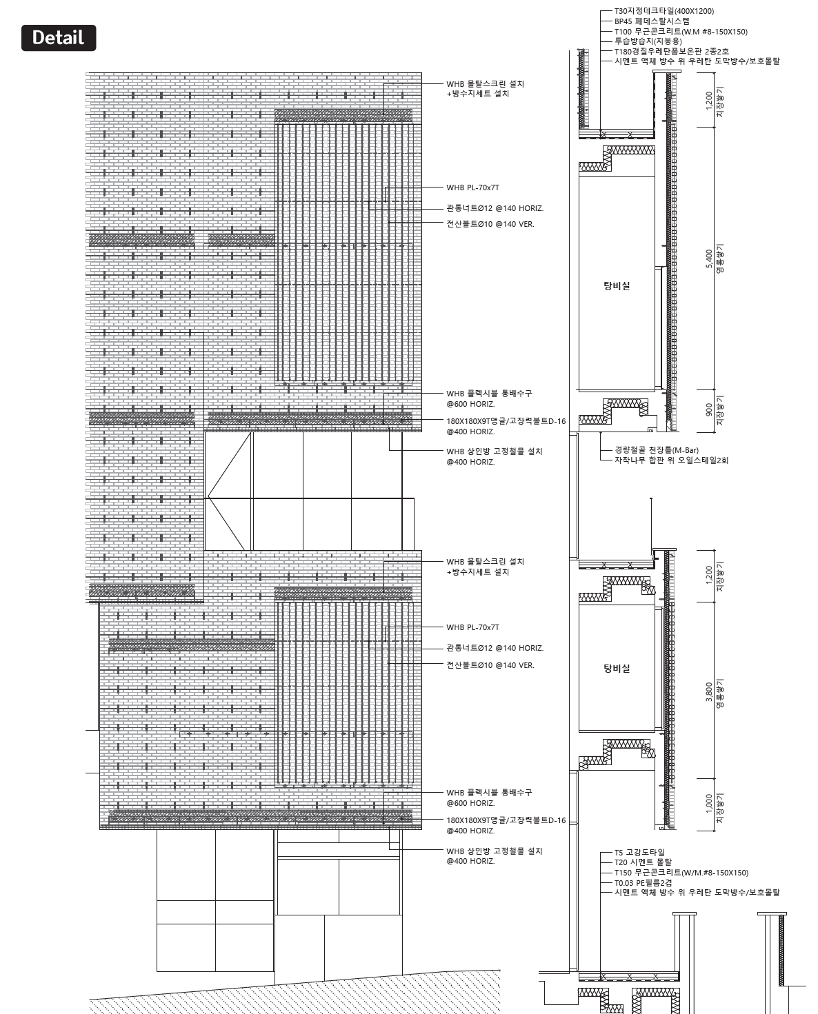 벽돌을 활용해 간결히 정리한 볼륨 덩어리는 인간이 느낄 수 있는 가장 안정적인 모습을 구현하고자 했다. 쓸데없는 형태적 기교를 최소화하고 단순·명확한 형태를 실현하기 위해 4개의 층, 4개의 덩어리, 4개의 외부공간으로 정돈했다. 이를 위해 우수 설비 시스템을 건축 내부로 계획해 온전한 건축형태로 정리했다. 또한 건축적 안정감 그 이상의 즐거움을 선물하고 싶었다. 벽돌로 쌓아 올린 덩어리를 4개로 분할하고, 그 사이에 자연과 만날 수 있는 외부공간을 계획했다. 외부공간은 면적에 포함되지 않는 출입구, 노대, 발코니, 테라스로 계획하여 전체 몸집을 키우고 다양한 경험을 유도했다. 정사각형에 가까운 4개의 볼륨을 그대로 쌓아 올린 듯한 외관 디자인은, 공간의 형태를 충분히 예상할 수 있으며 어떠한 건축적 결함이 없음을 사람들에게 호소한다.