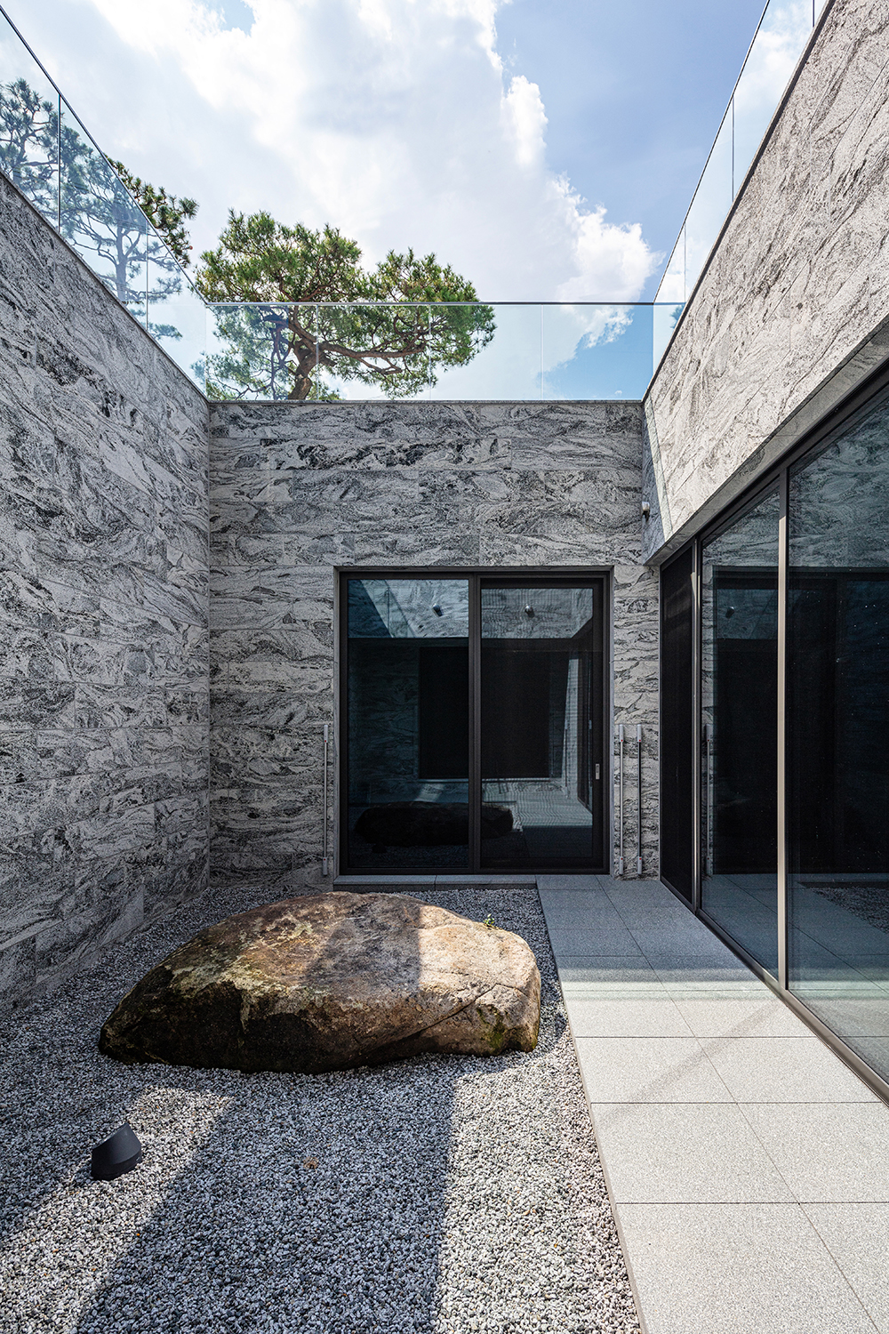During the excavation process after starting construction, a rather large rock was discovered. Since the existing building didn’t have a basement, it was clear that this rock was originally a part of the land. Deciding to honor this ancient guardian of the site, we sought to give it a new place. Though its shape and texture weren’t suitable for the interior, we ultimately positioned it in the sunken courtyard. It now seems as if the rock is comfortably breathing in its new home.