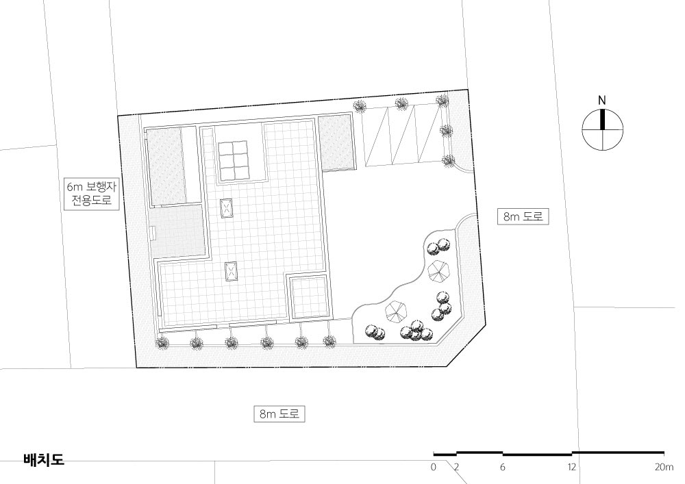 주택은 도자 회화라는 독특한 분야의 작업을 하는 작가의 갤러리와 작업공간이다. 작가 에 대한 이해에서부터 시작되어야 한다는 생각에 건축을 구체화시키기에 앞서 건축주의 작품을 감상하고 이해하는 시간을 가졌다. 건축주의 작품들은 그의 책장에 꽂혀진 미술 책들처럼 - 조르주 루오의 투박하고 순수함과, 마크 로스코의 강렬하거나 때론 잔잔한 색감, 장 미쉘 바스키아의 즉흥성과 유머러스함 - 친숙하면서도 강한 인상을 주었다.