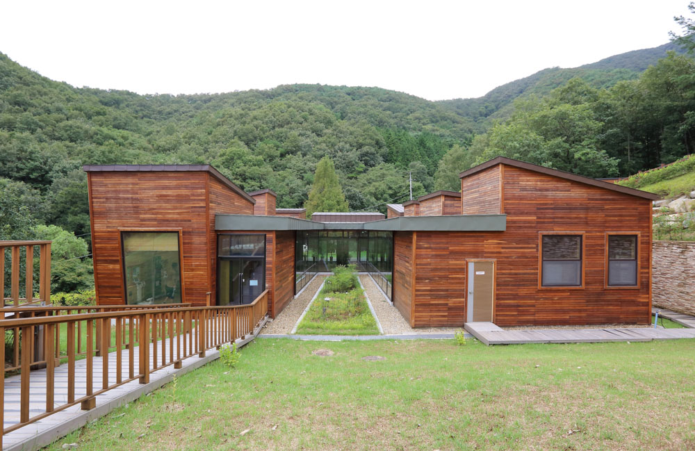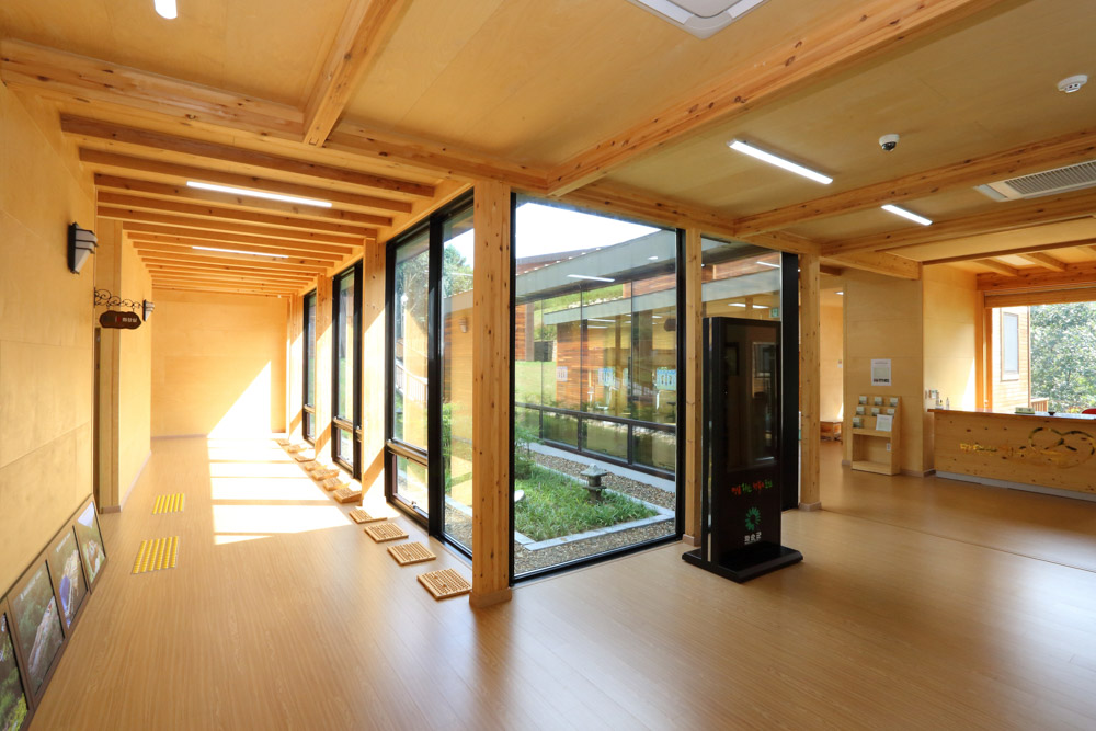 MOUNTAIN MANYEON HEALING CENTER Client | Hwasun-gun Supervisor | Architecture SAMJIN Construction | SEOAN Construction Project team | Kang, Hyunchang / Sin, Minju / Cho, Gayoung / Lim, Gwonuk Location | San 181-3, Dongu-ri, Hwasun-eup, Hwasun-gun, Jeollanam-do, Korea Program | Community facility Site area | 4,871.00㎡ Building area | 430.17㎡ Gross floor area | 425.37㎡ Building to land ratio | 8.83% Floor area ratio | 8.73% Building scope | 1F Structure | Heavy Wood structure Exterior finishing | Western red ceder, Metal Panel, 43mm Lew-e Triple Glass System Interior finishing | Veneer of birch , Retinispora Design period | May 2015 ~ Aug. 2015 Construction period | Jun. 2016 ~ Jun. 2017 Photograph | Jo, Seongjin Structural engineer | DOHWA Mechanical engineer | G.I Engineering Electrical engineer | CHENG AN ENG Fire engineer | HANGIL ENC |